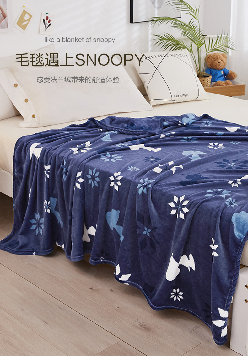 史努比SNOOPY冬日恋歌雪绒毯SNB04-8 深蓝色