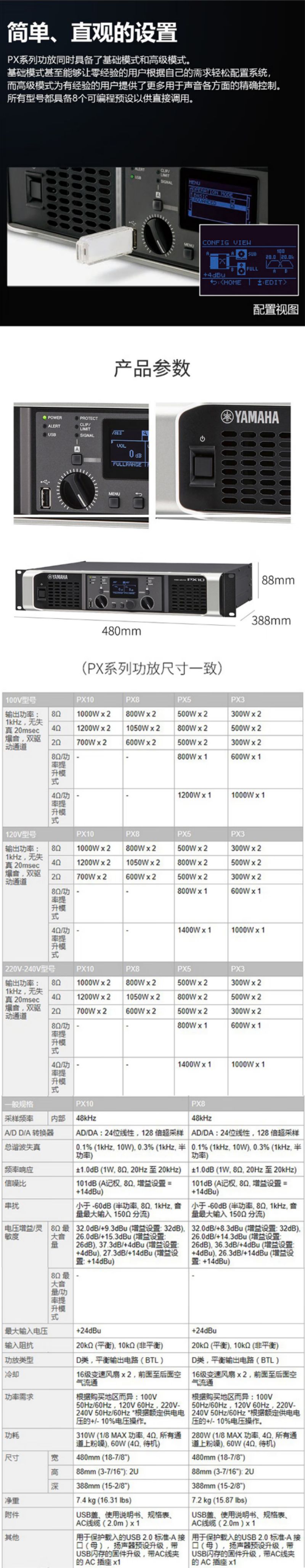 雅马哈(YAMAHA) 2*1000W 立体声音数字功放 PX10 不锈钢色