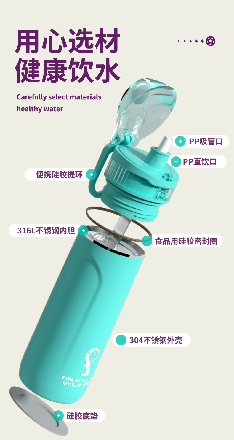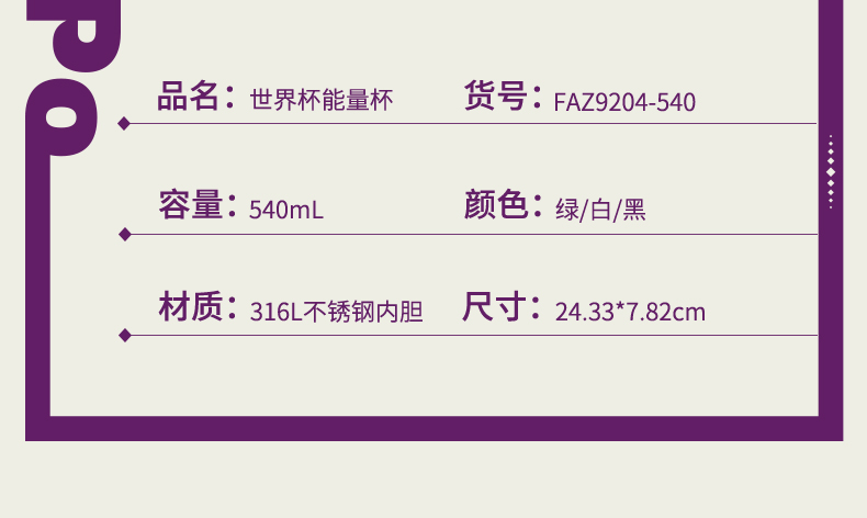 富光 世界杯能量杯316保温杯 540ml FAZ9204-540 绿色