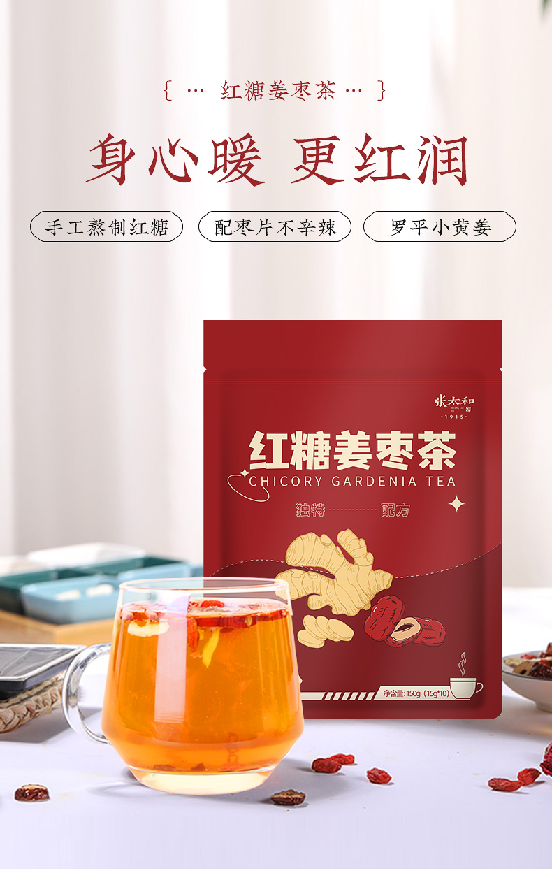 张太和 桂圆红枣枸杞茶养生茶 花茶红糖姜枣茶 男女元气花颜茶组合水果花草茶包(约10小包) 红糖姜枣茶150g*2袋