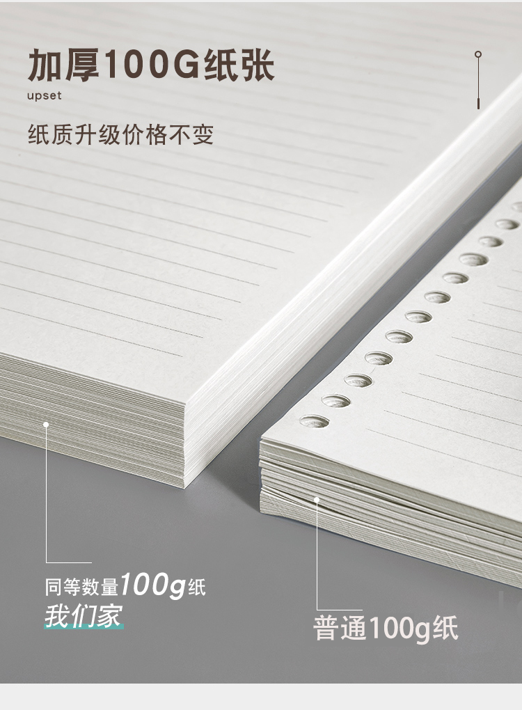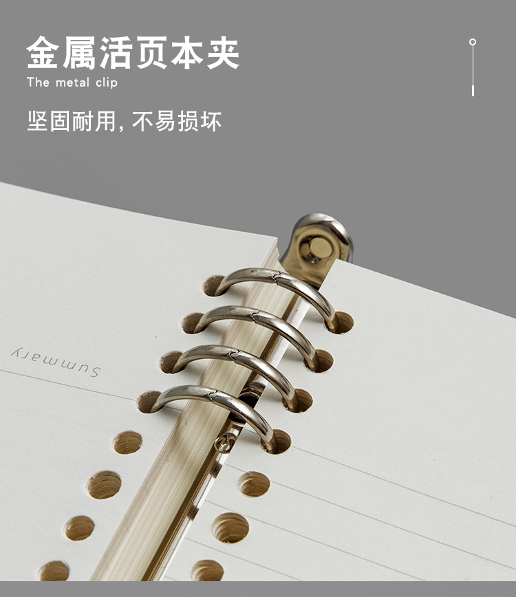三年二班A4/60张8孔方格网格笔记本子不硌手活页本加厚可拆卸外壳学生文具记事错题本 A4方格白色 透明白