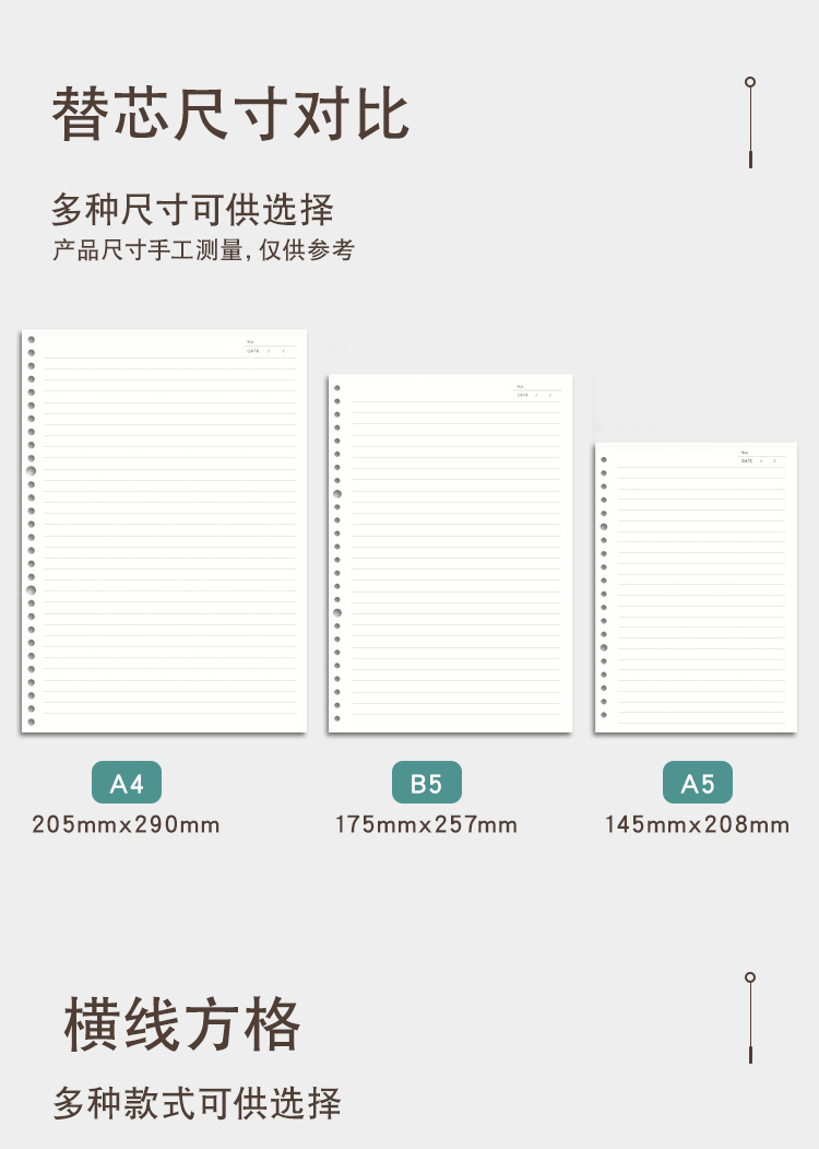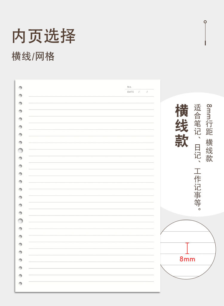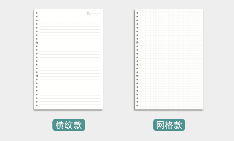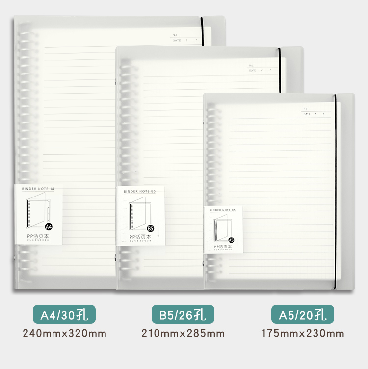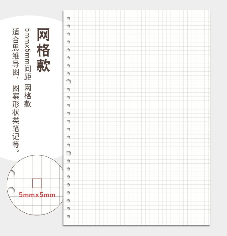 三年二班A4/60张30孔方格网格笔记本子不硌手活页本加厚可拆卸外壳学生文具记事错题本 A4方格白色 透明白