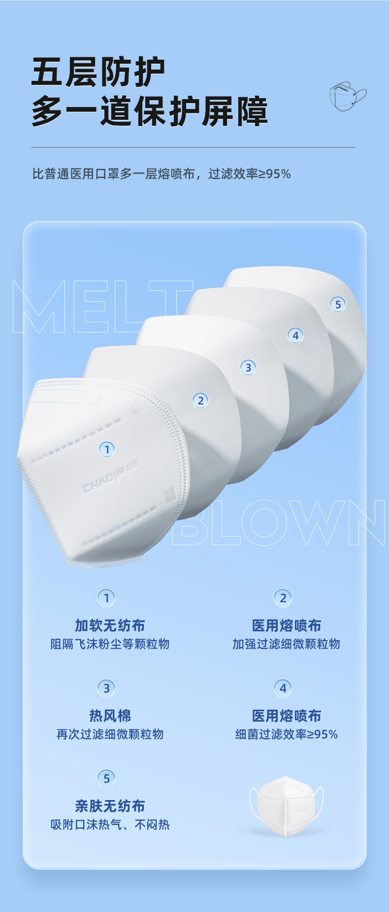 超亚医用口罩N95五层秋季防沙尘双层熔喷布灭菌级独立包装 白色25只/盒 白色