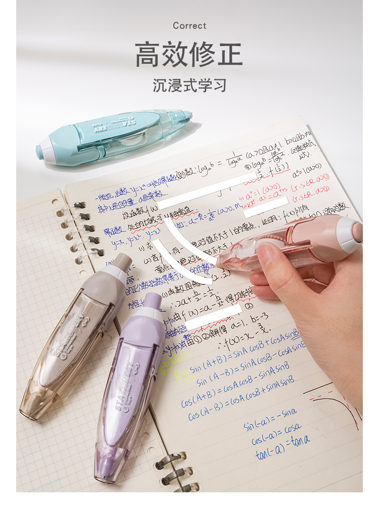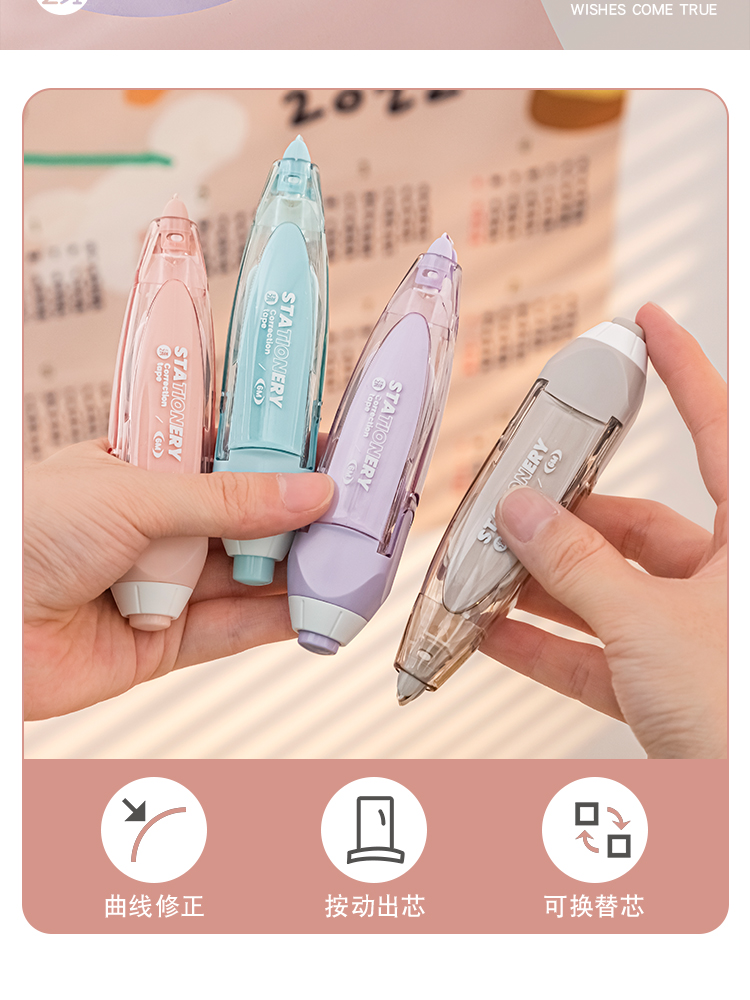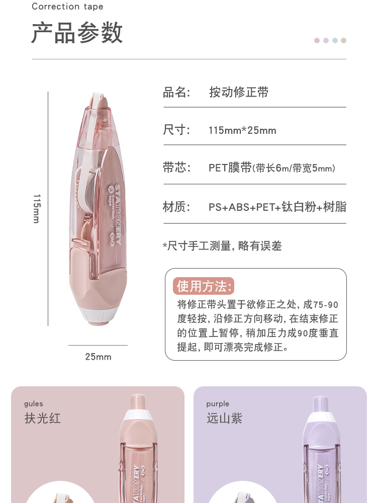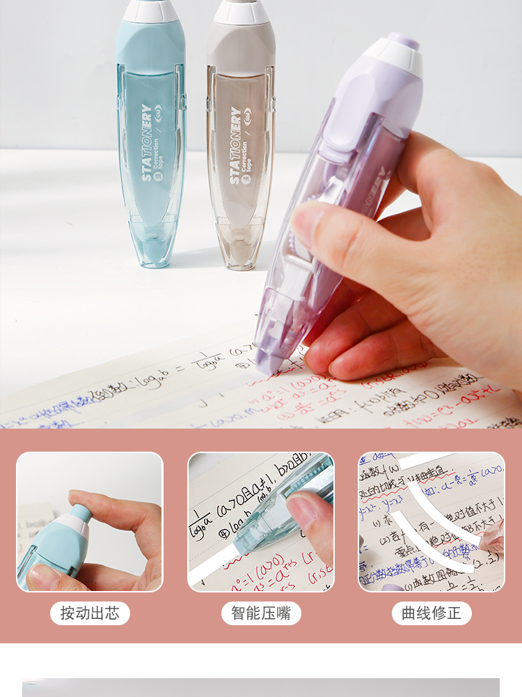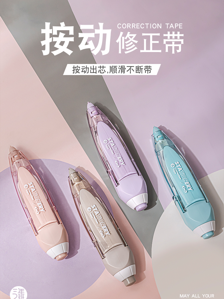 三年二班 Basic系列按动修正带文具小学生可换替芯涂改带高颜值日系女生初中生修改带高科技按压改正带 扶光红