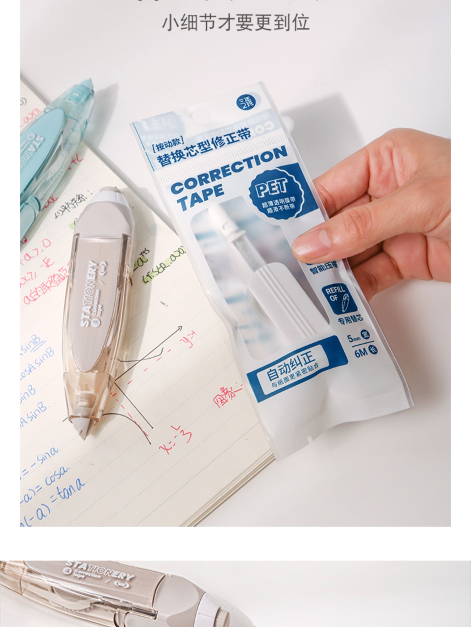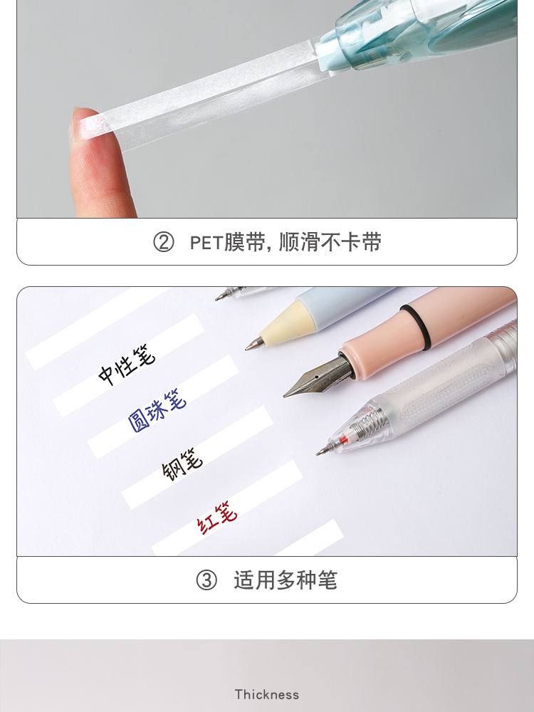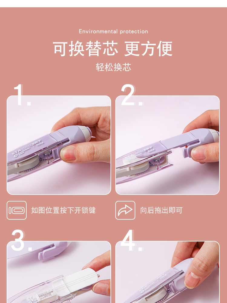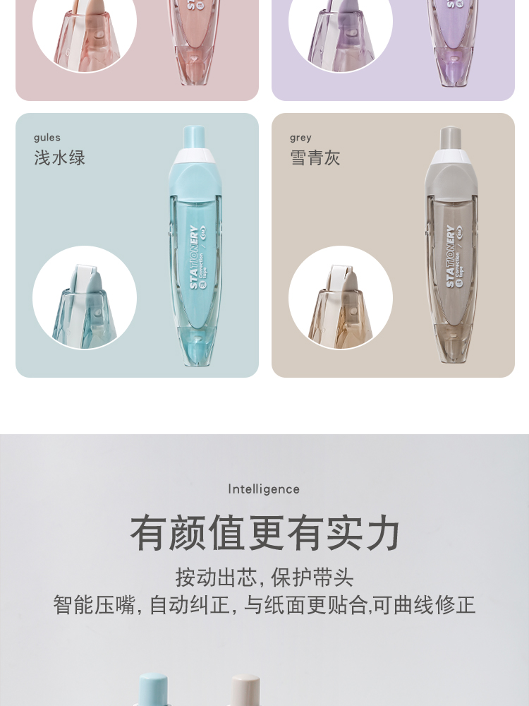 三年二班 Basic系列按动修正带文具小学生可换替芯涂改带高颜值日系女生初中生修改带高科技按压改正带 扶光红