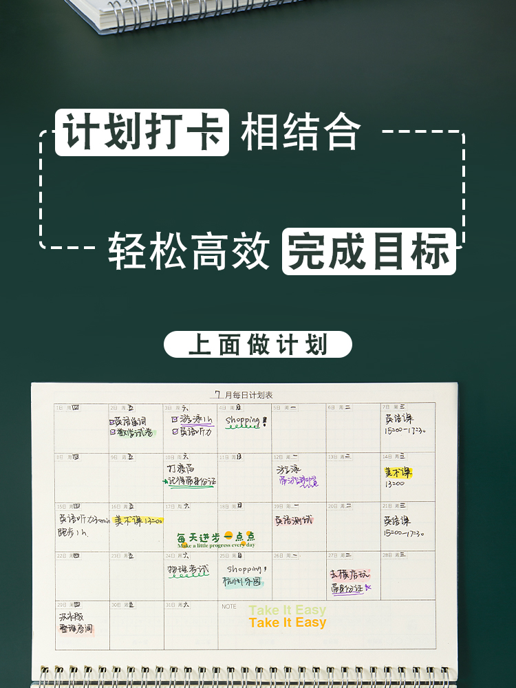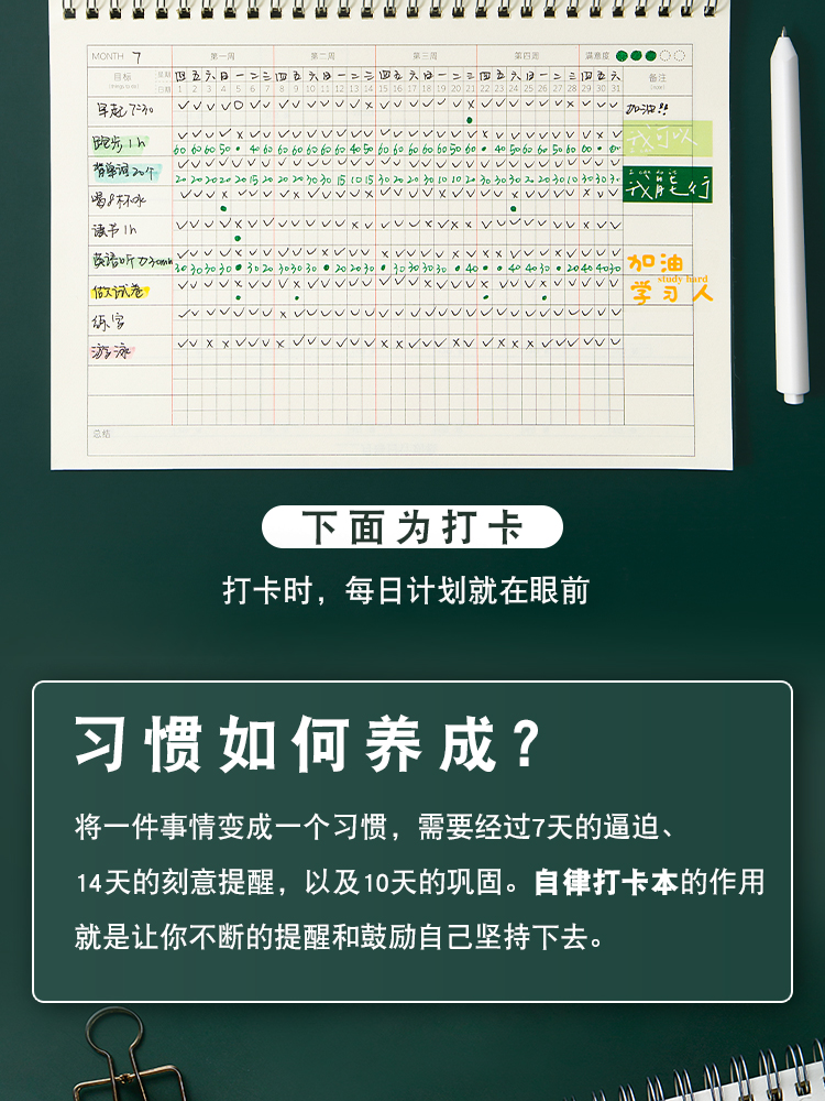 三年二班 B5/60张自律打卡本计划本记录本文具 学生学习笔记本子打卡神器日程本考研规划本 白色