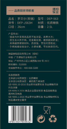 德铂(Debo)罗贝尔煎锅 26cm DEP-563 (单位:个) 黑色