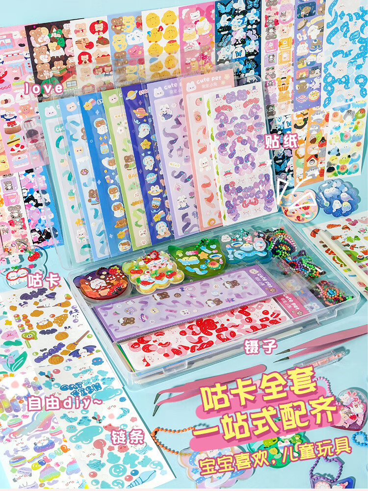 三年二班咕卡全套材料包做咕卡盘工具大套装贴画贴纸卡片超值随心配diy手账收纳盒女孩儿童/个 【豪华174件套】方盒装