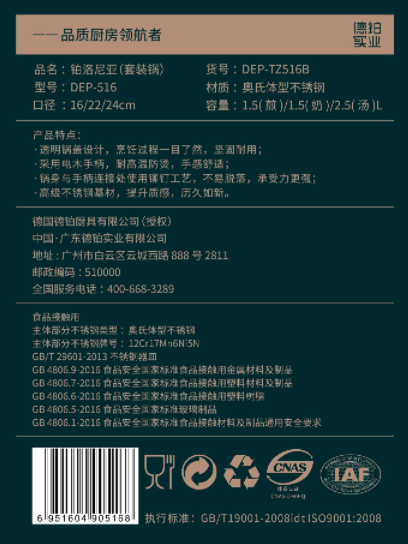 德铂(Debo)铂洛尼亚套装锅16/22/24cm DEP-516 (单位:套) 不锈钢色