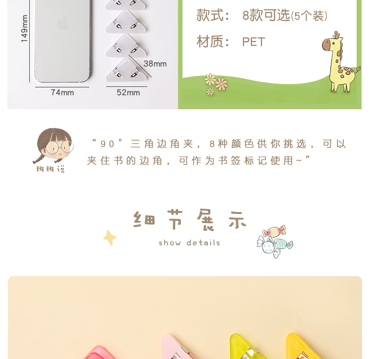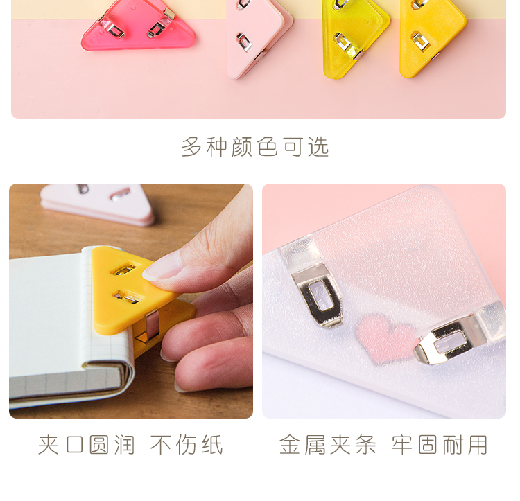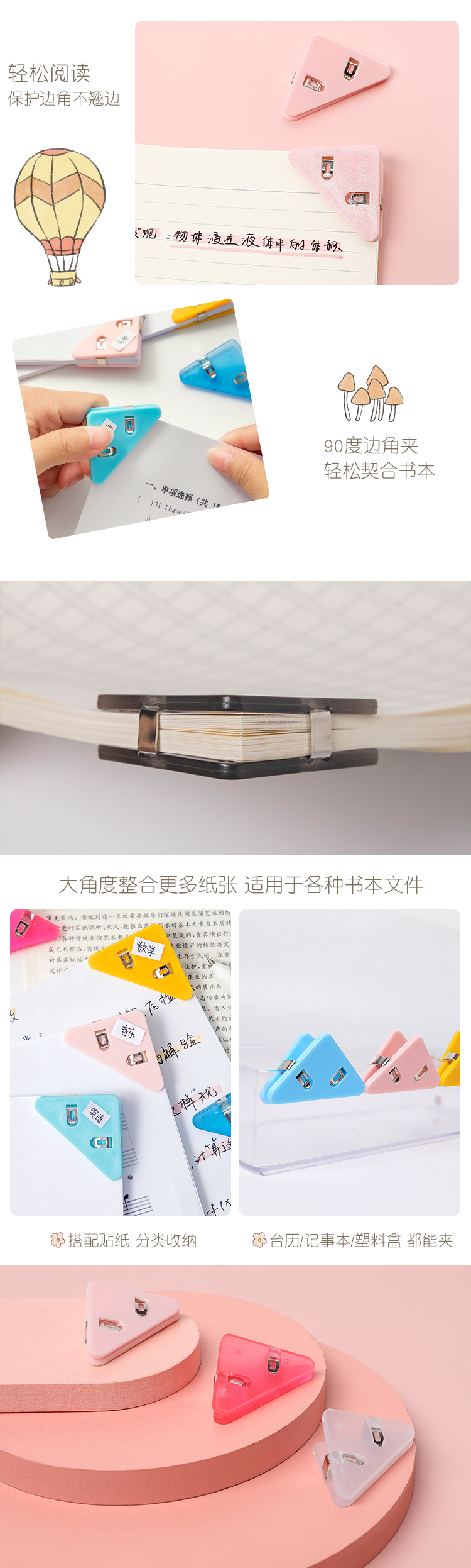 三年二班三角夹边角夹彩色文件夹子 学生试卷收纳文具书夹子办公资料整理长尾夹燕尾夹票据夹 天蓝色5个装 天蓝