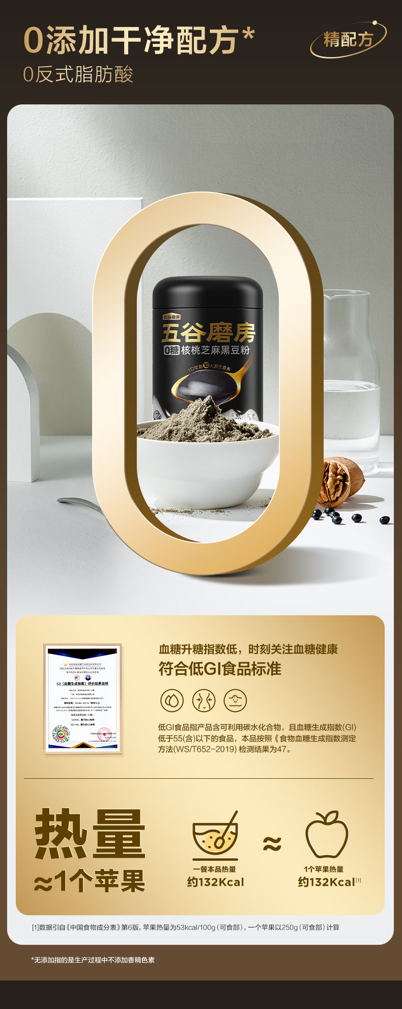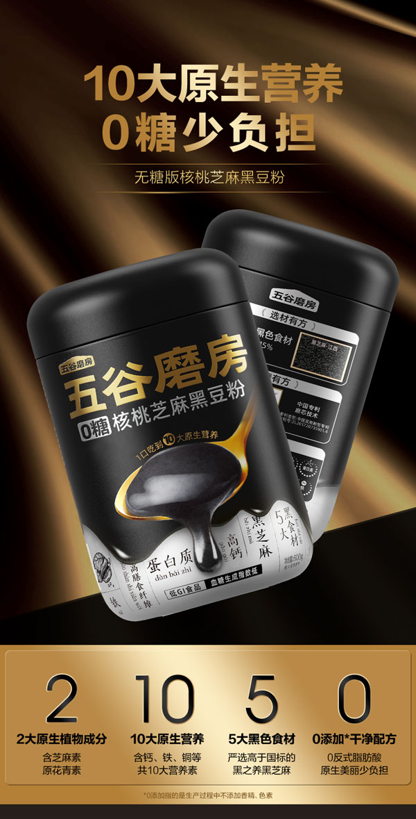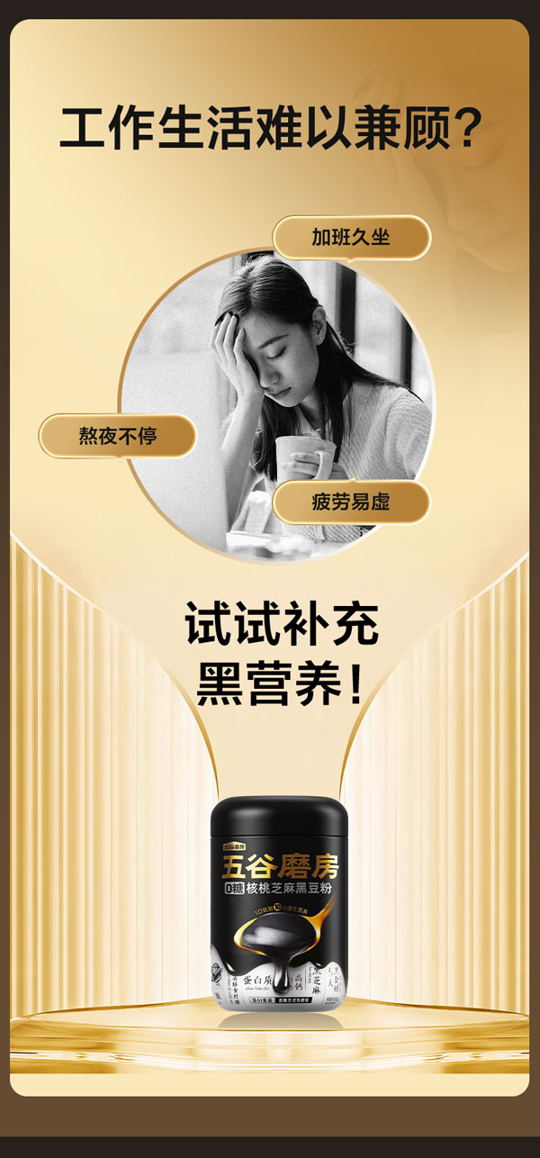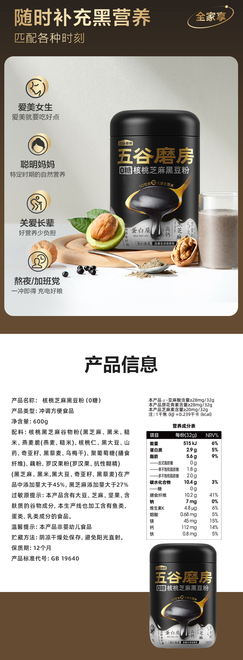 五谷磨房 核桃芝麻 黑豆粉 600g 常规款 黑色(单位:罐)