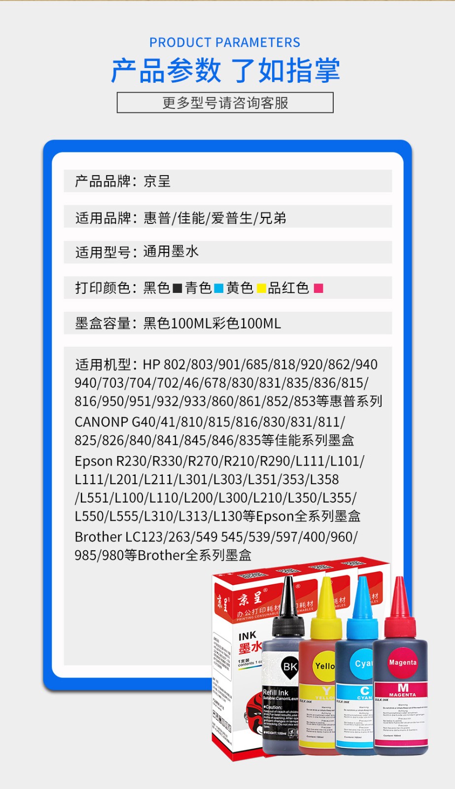 京呈 四色墨水套装 25ML/瓶 适用惠普HP803墨盒HP1111 1112 2130(单位:套) 四色墨水套装 25ML/瓶