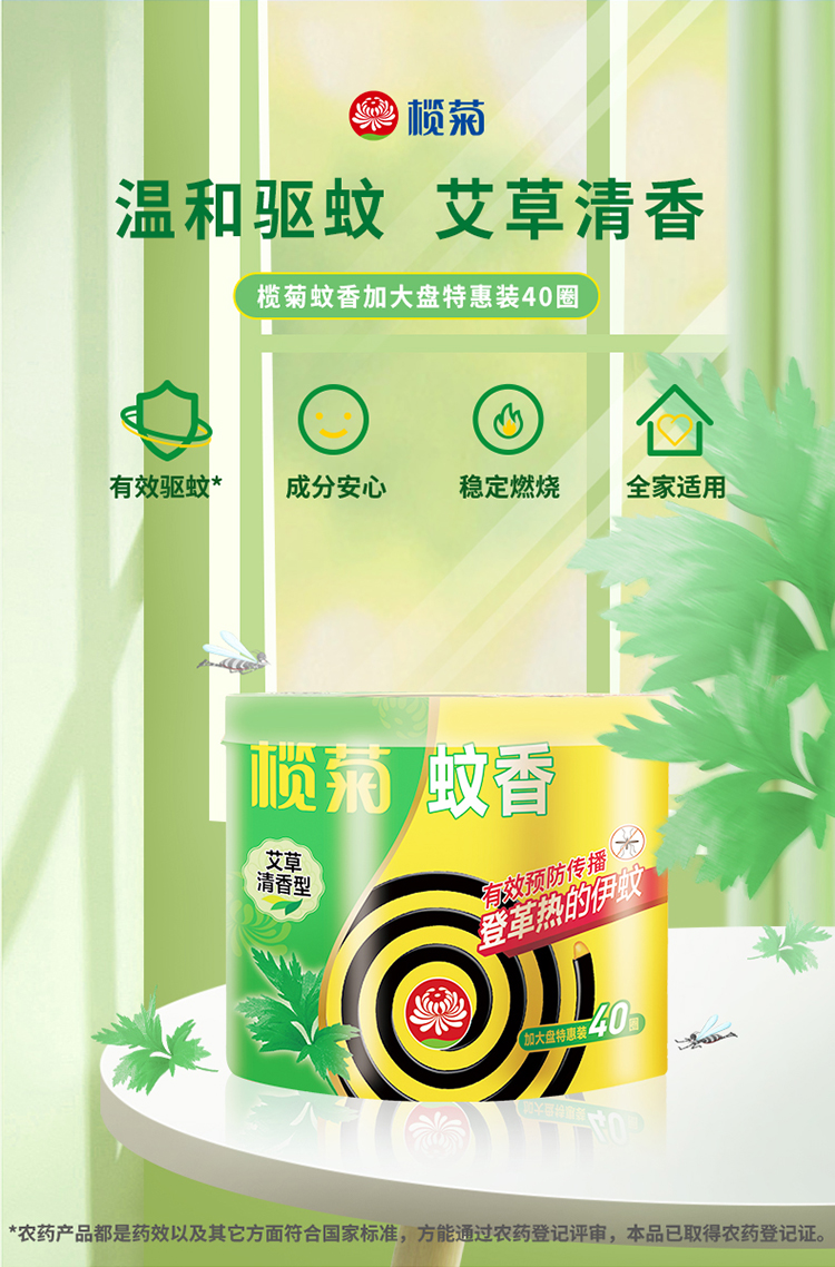 榄菊加大盘艾草型蚊香塑料筒装(40单圈) 盒 松石绿