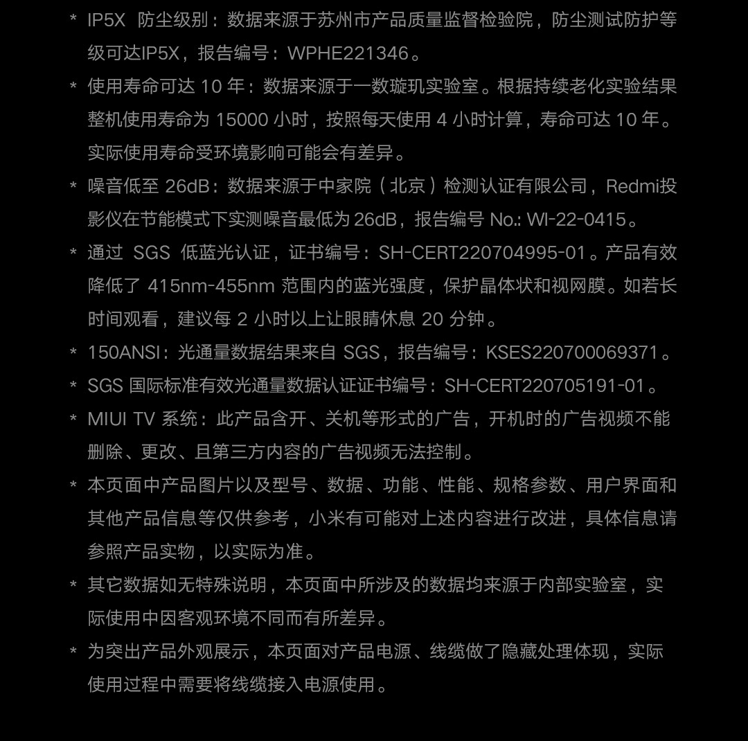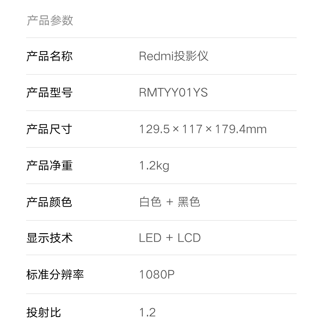 小米 Redmi投影仪RMTYY01YS 台 白色