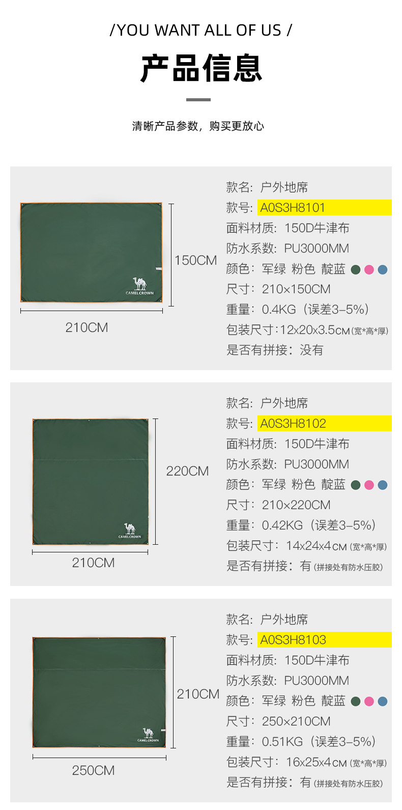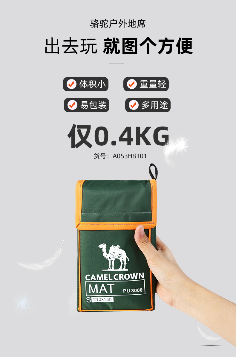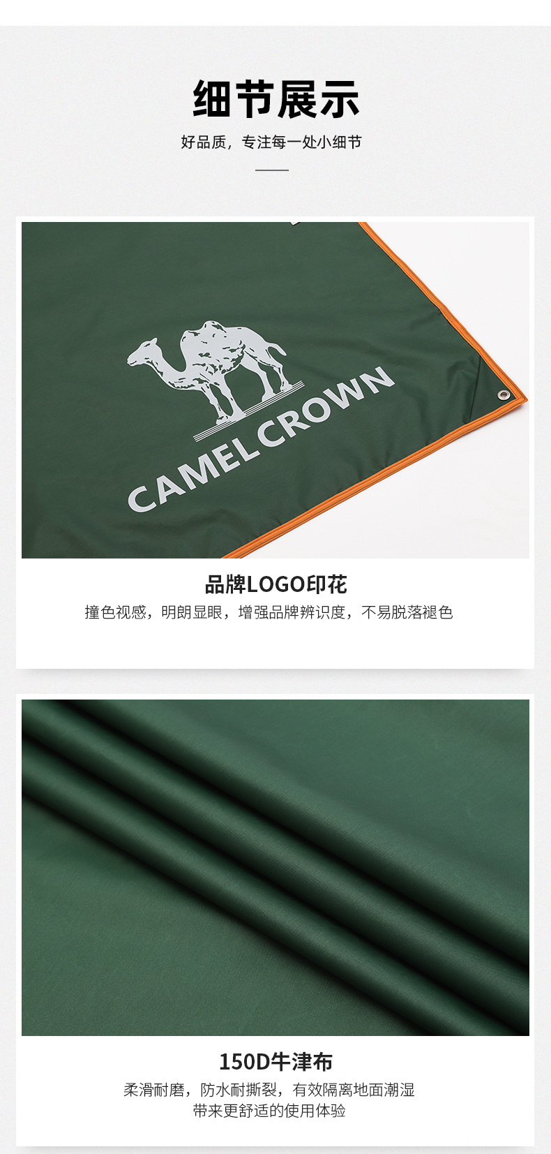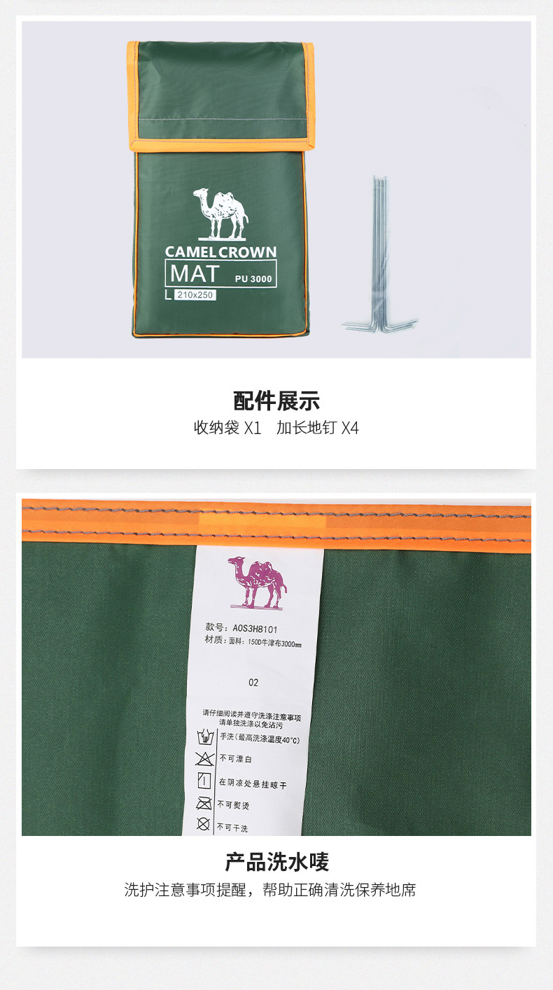 骆驼(CAMEL)户外地席帐篷露营地垫加厚防水耐磨野餐垫牛津布防潮摆摊地布 A0S3H8101 张 军绿色
