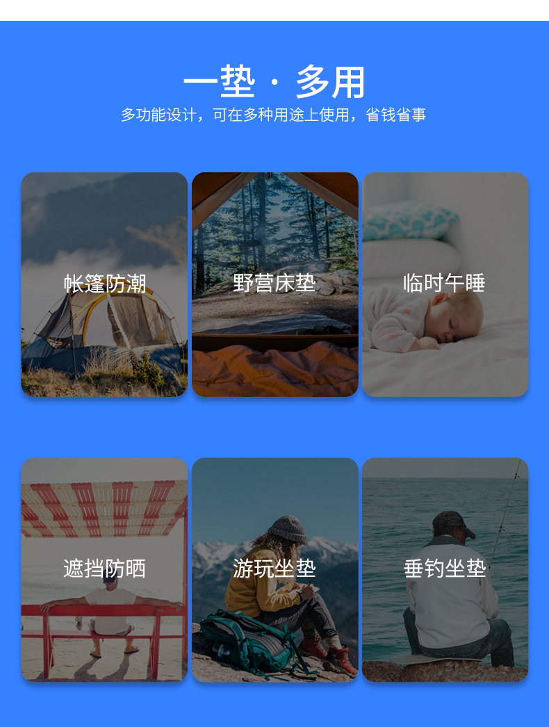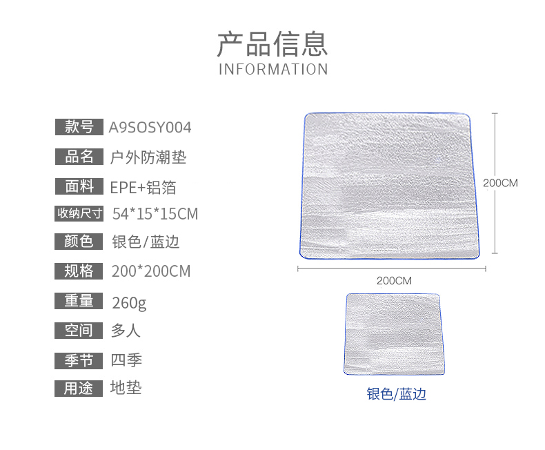 骆驼 防潮垫户外地垫便携沙滩垫野餐垫铝膜防潮垫野炊午睡垫A9SOSY004 单位:张 银色/蓝边