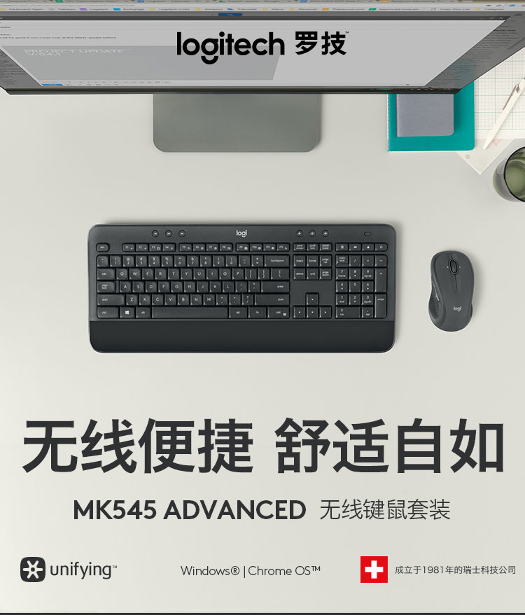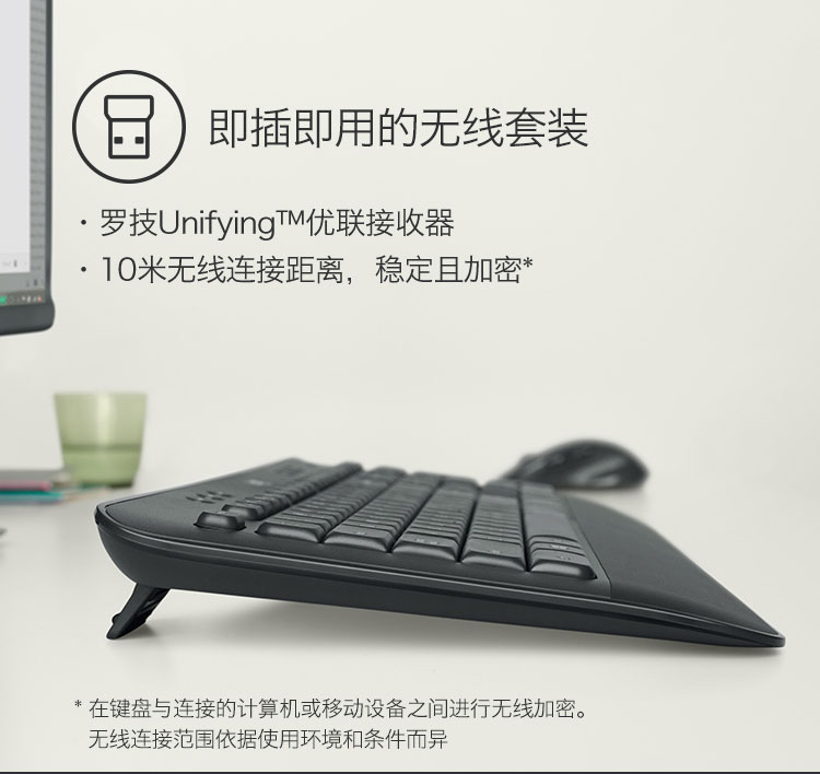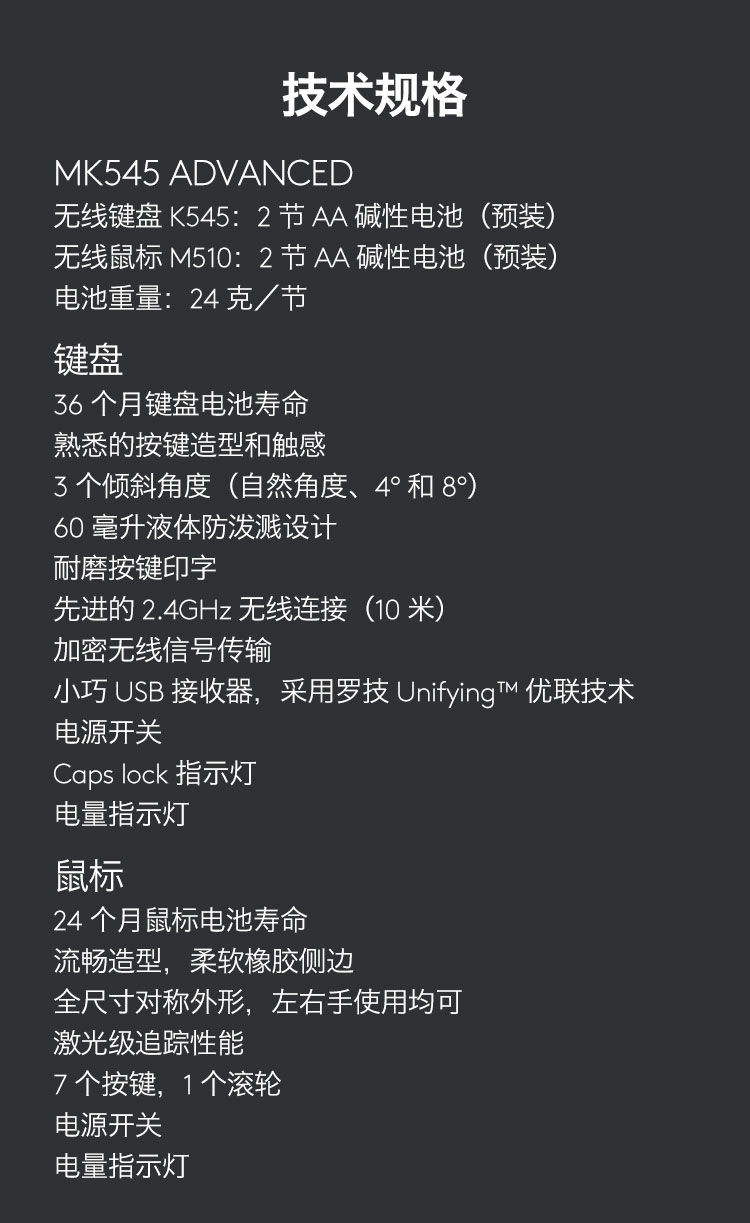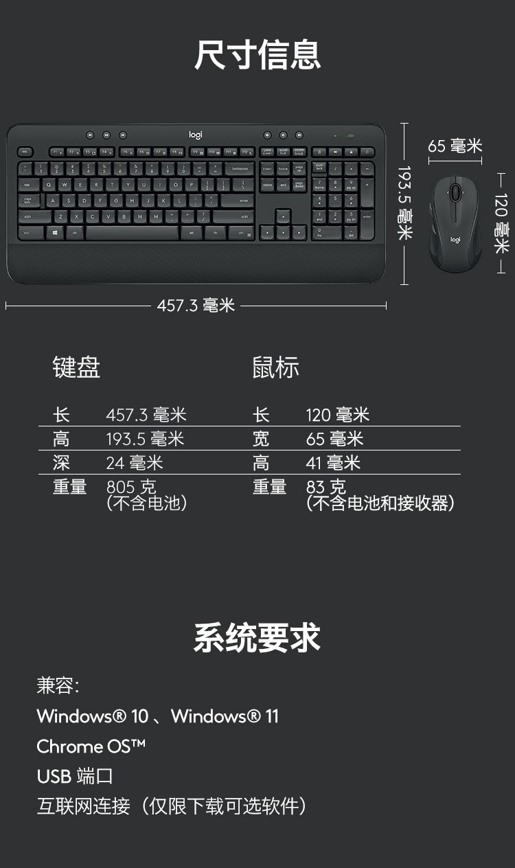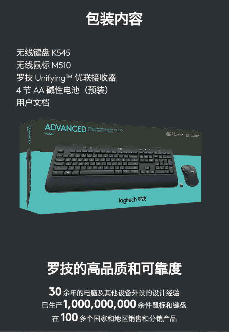 罗技(Logitech)MK545 键鼠套装 无线键鼠套装 办公键鼠套装 全尺寸 带无线2.4G接收器 套 黑色