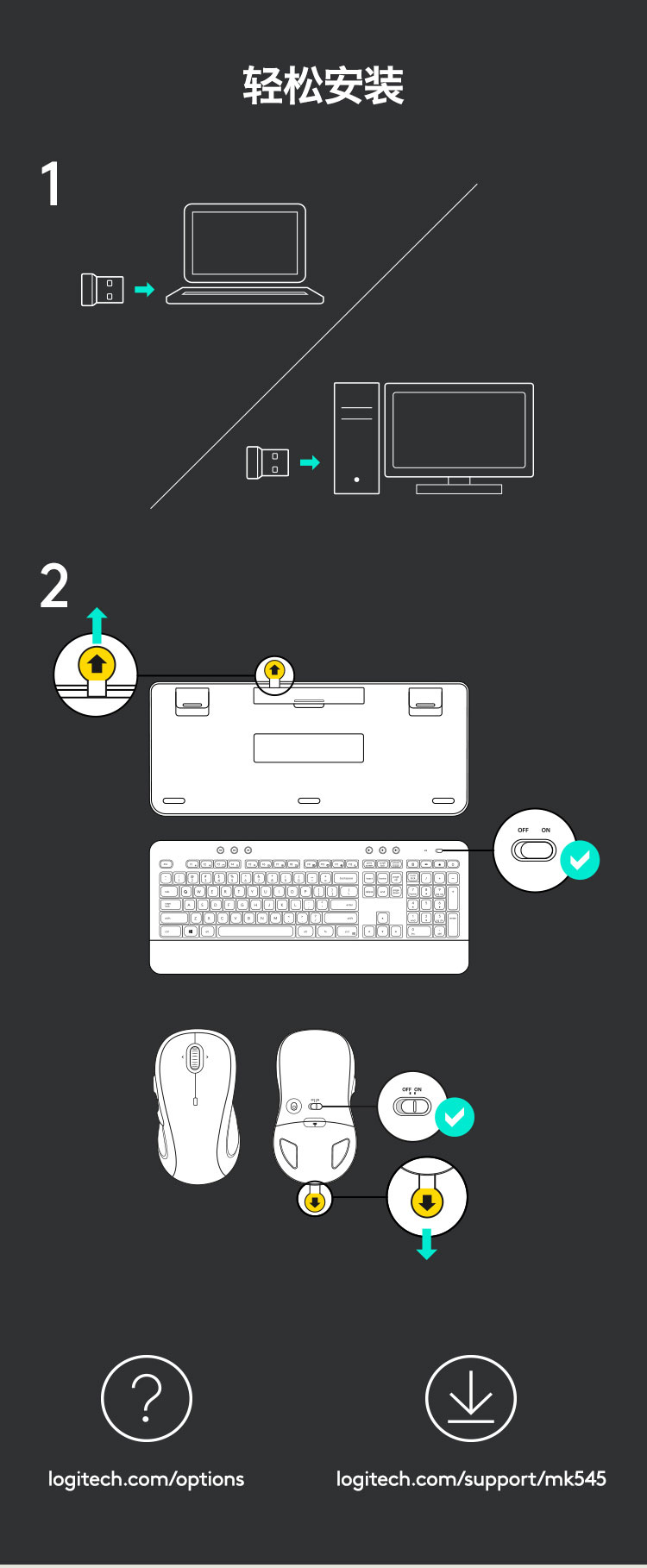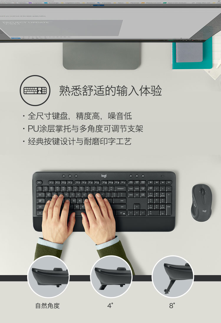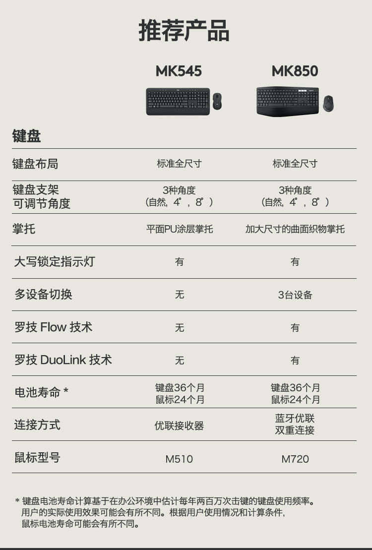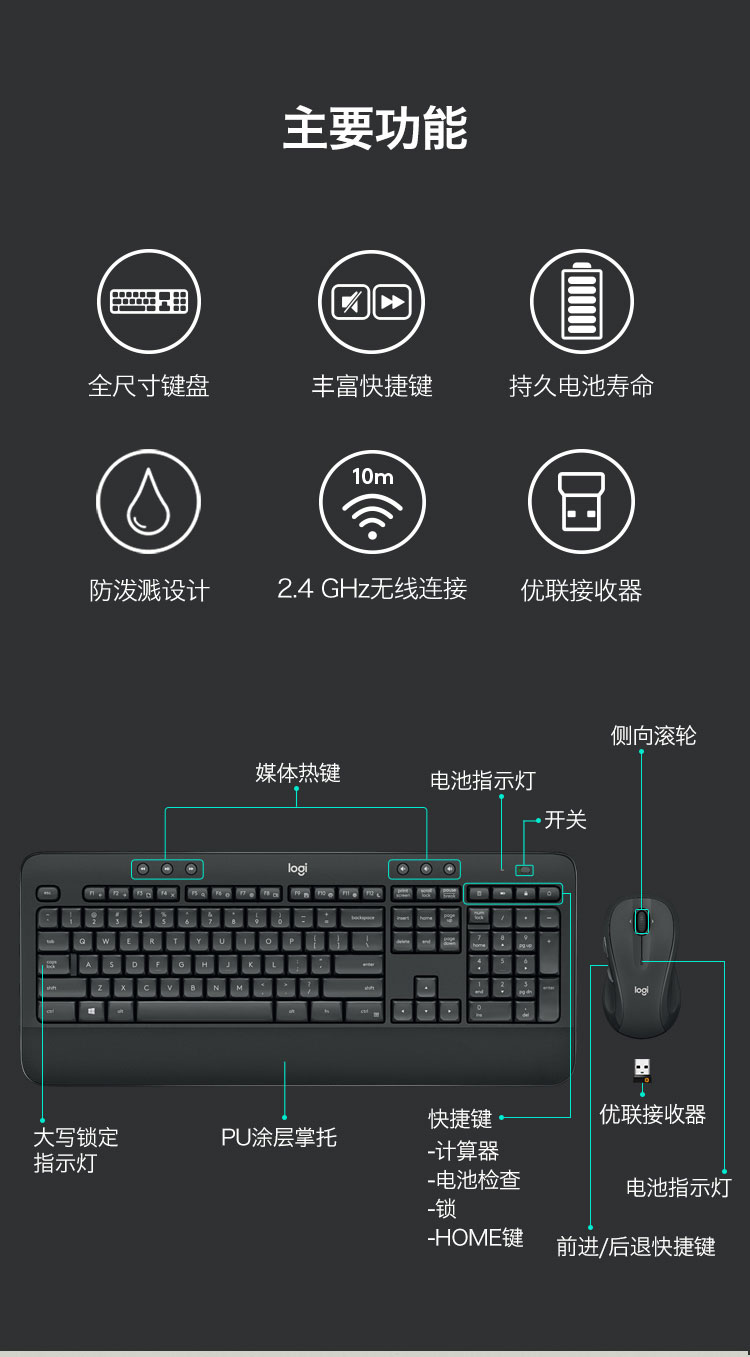 罗技(Logitech)MK545 键鼠套装 无线键鼠套装 办公键鼠套装 全尺寸 带无线2.4G接收器 套 黑色