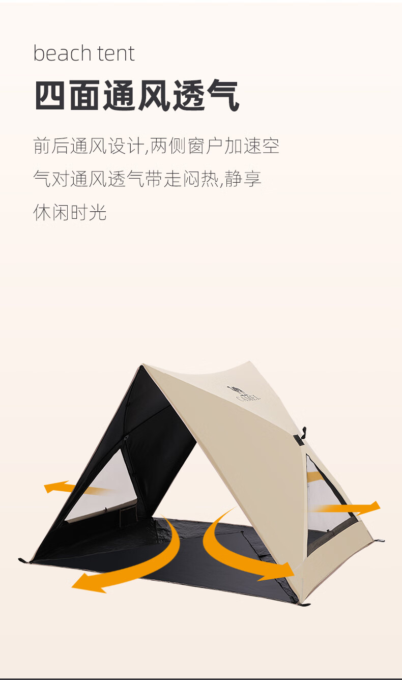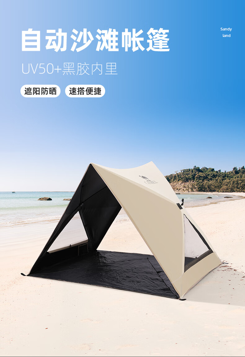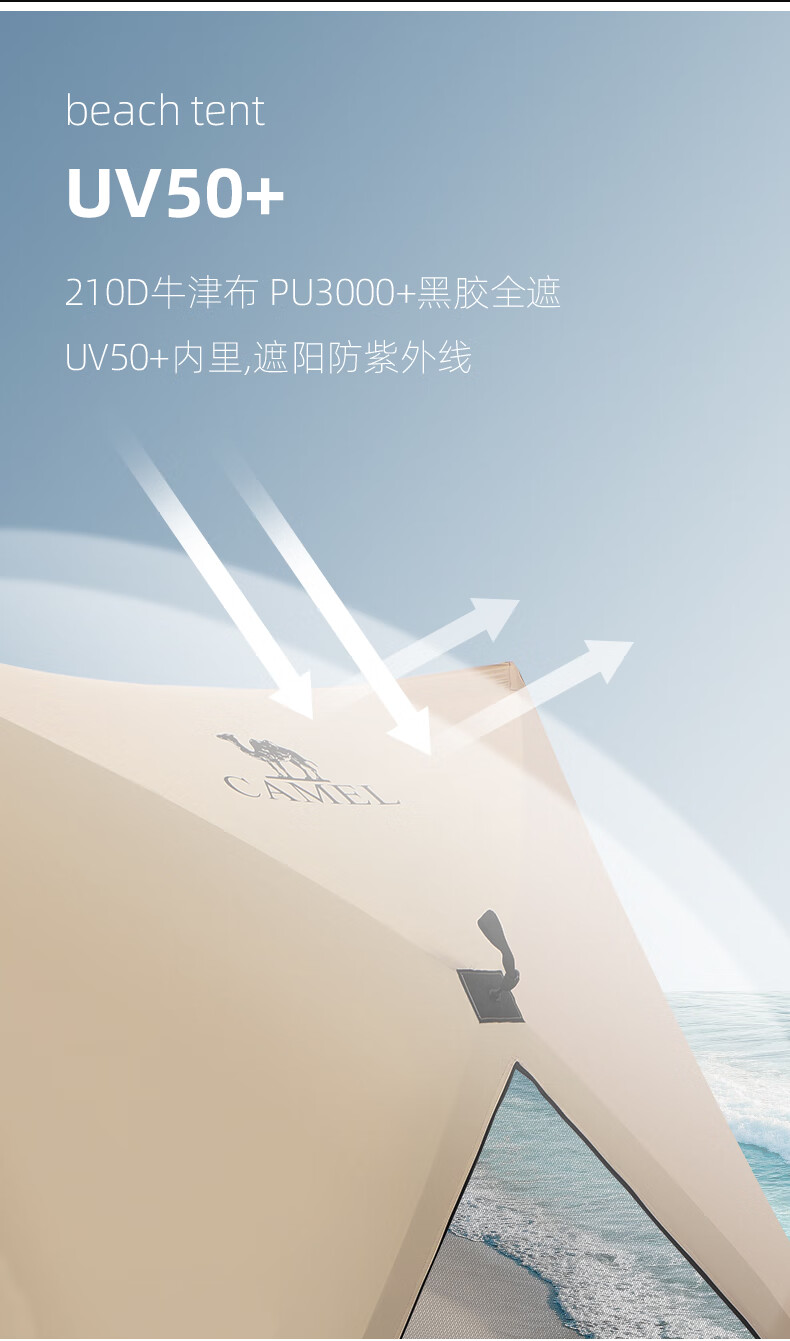 骆驼(CAMEL)帐篷户外便携式折叠自动露营用品装备野营黑胶防晒沙滩遮阳棚 1V32267032 个 浅沙色