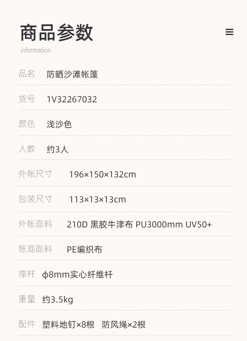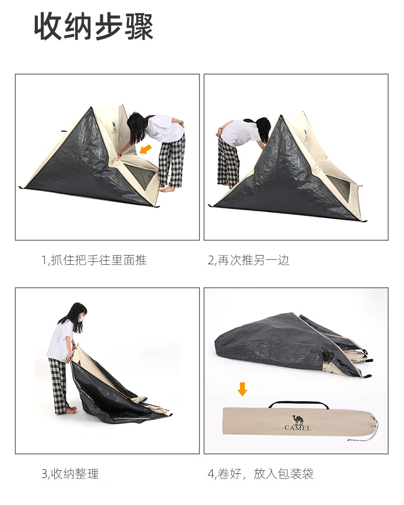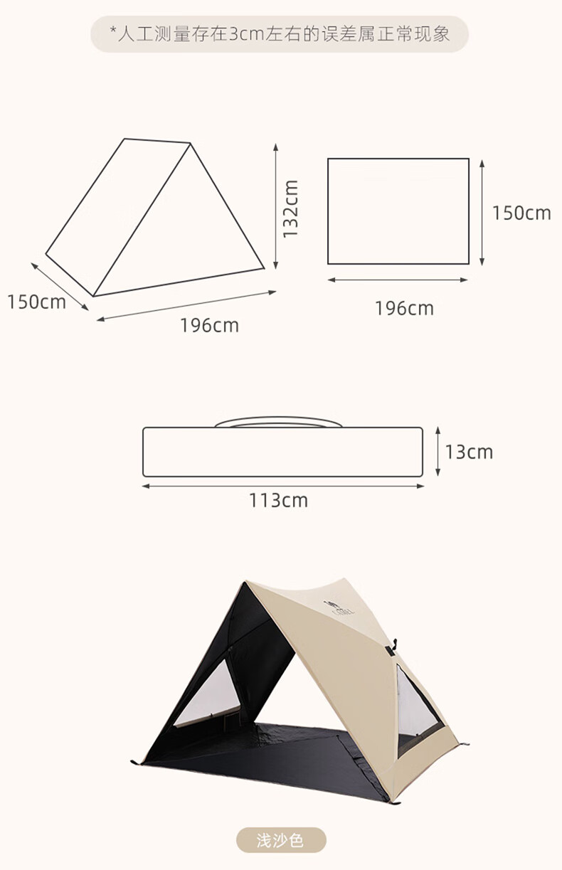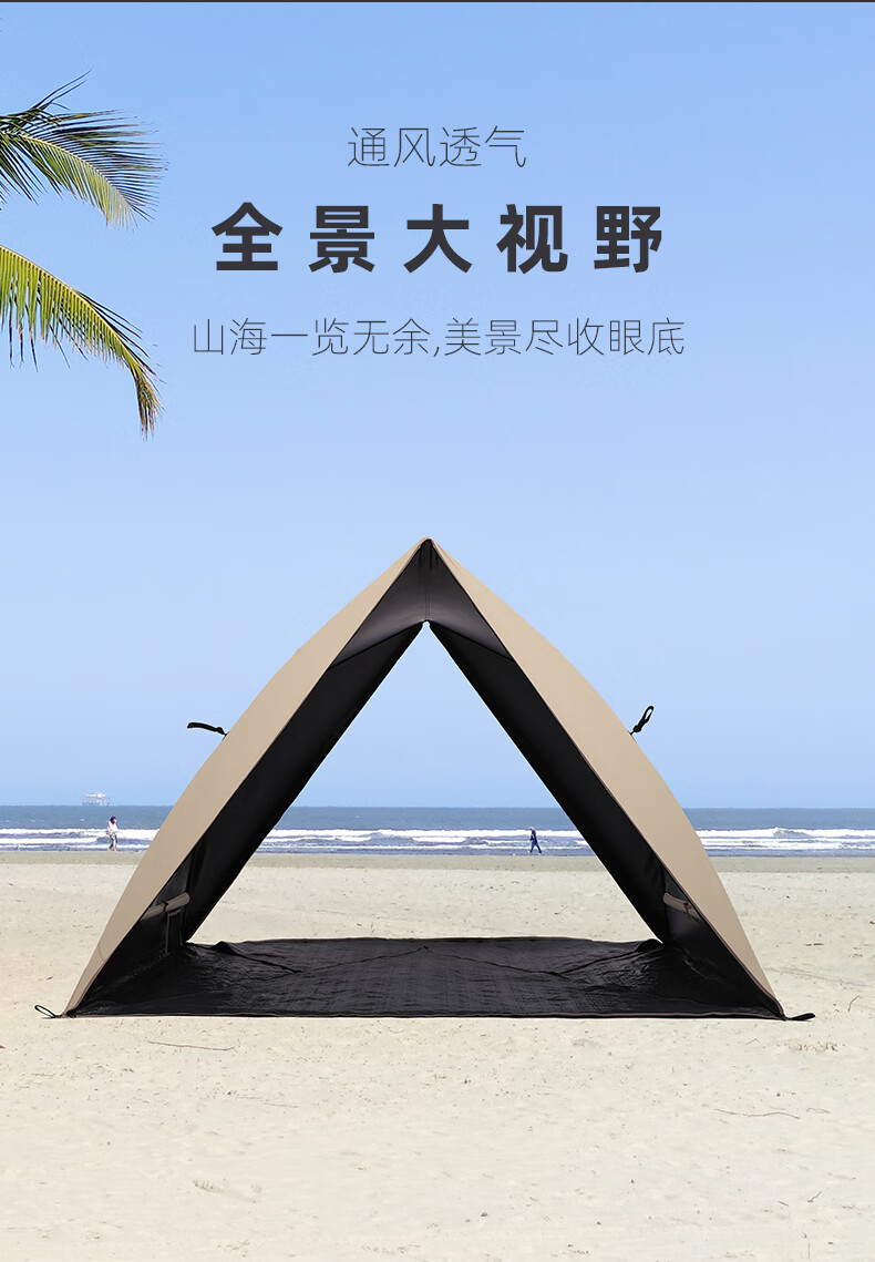 骆驼(CAMEL)帐篷户外便携式折叠自动露营用品装备野营黑胶防晒沙滩遮阳棚 1V32267032 个 浅沙色