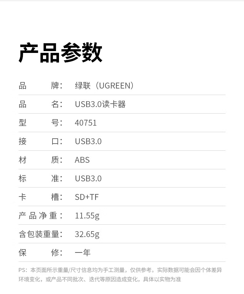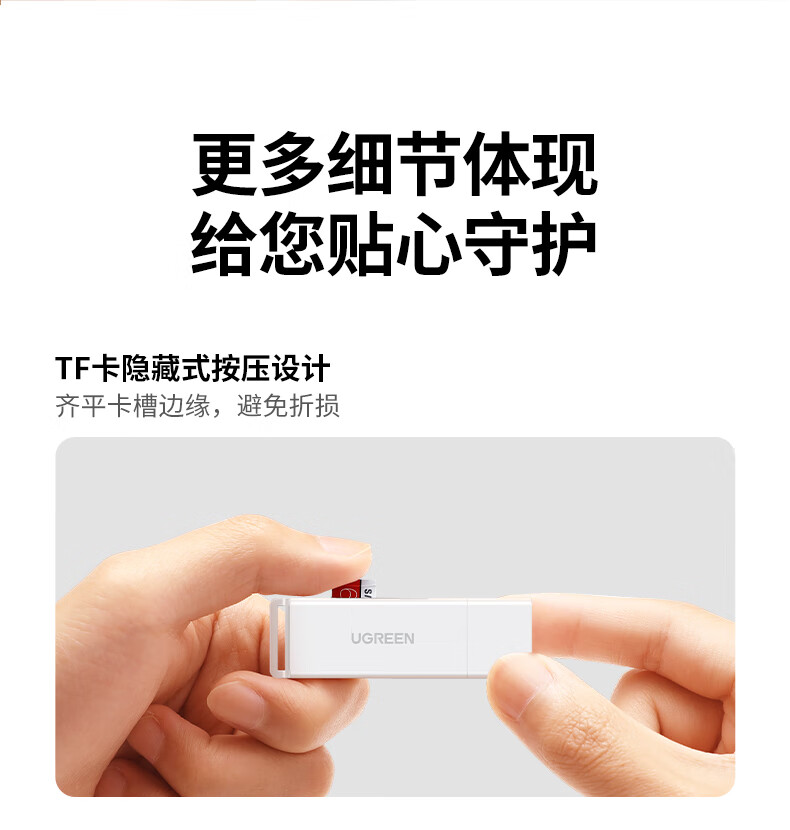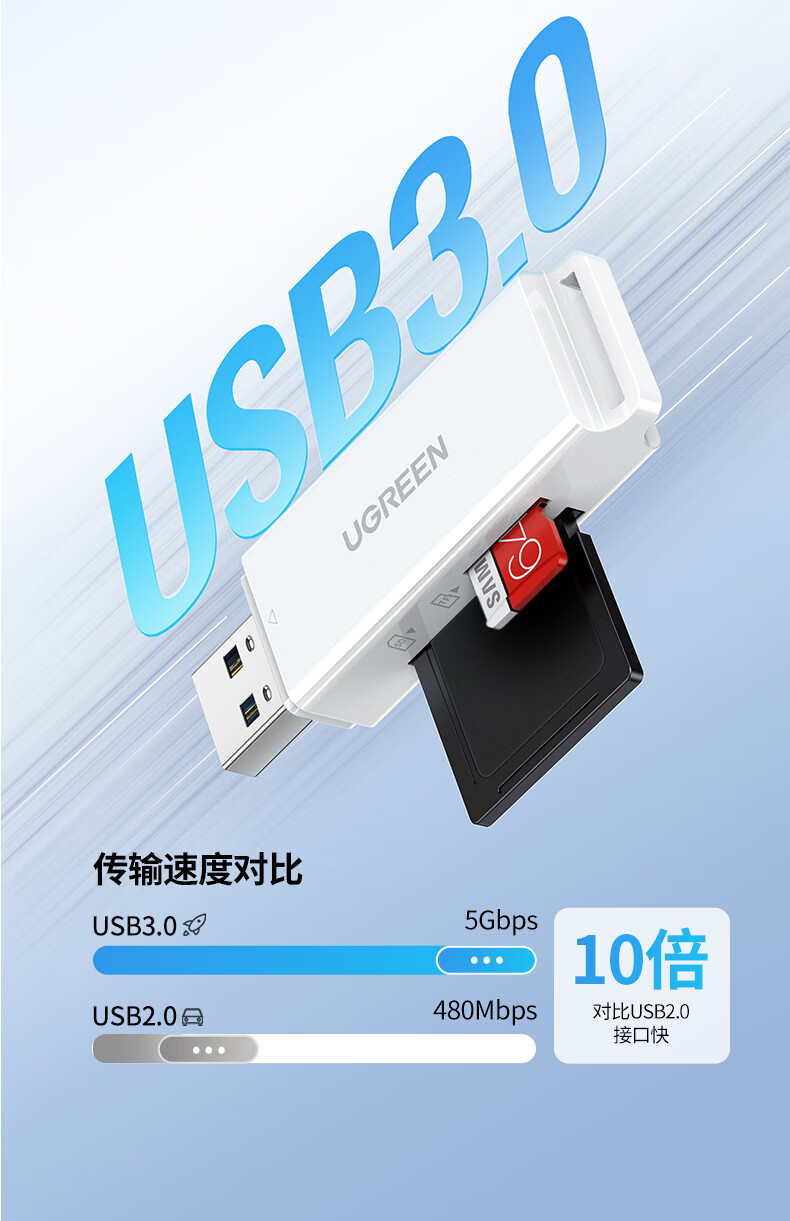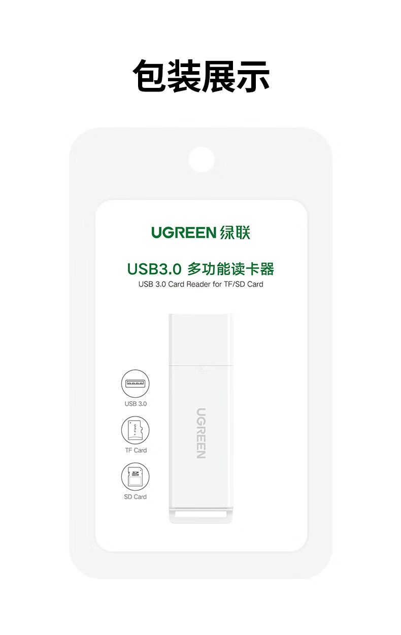 绿联(UGREEN)USB3.0高速读卡器 多功能SD/TF读卡器多合一 支持手机单反相机行车记录仪监控存储内存卡40751 个 白色