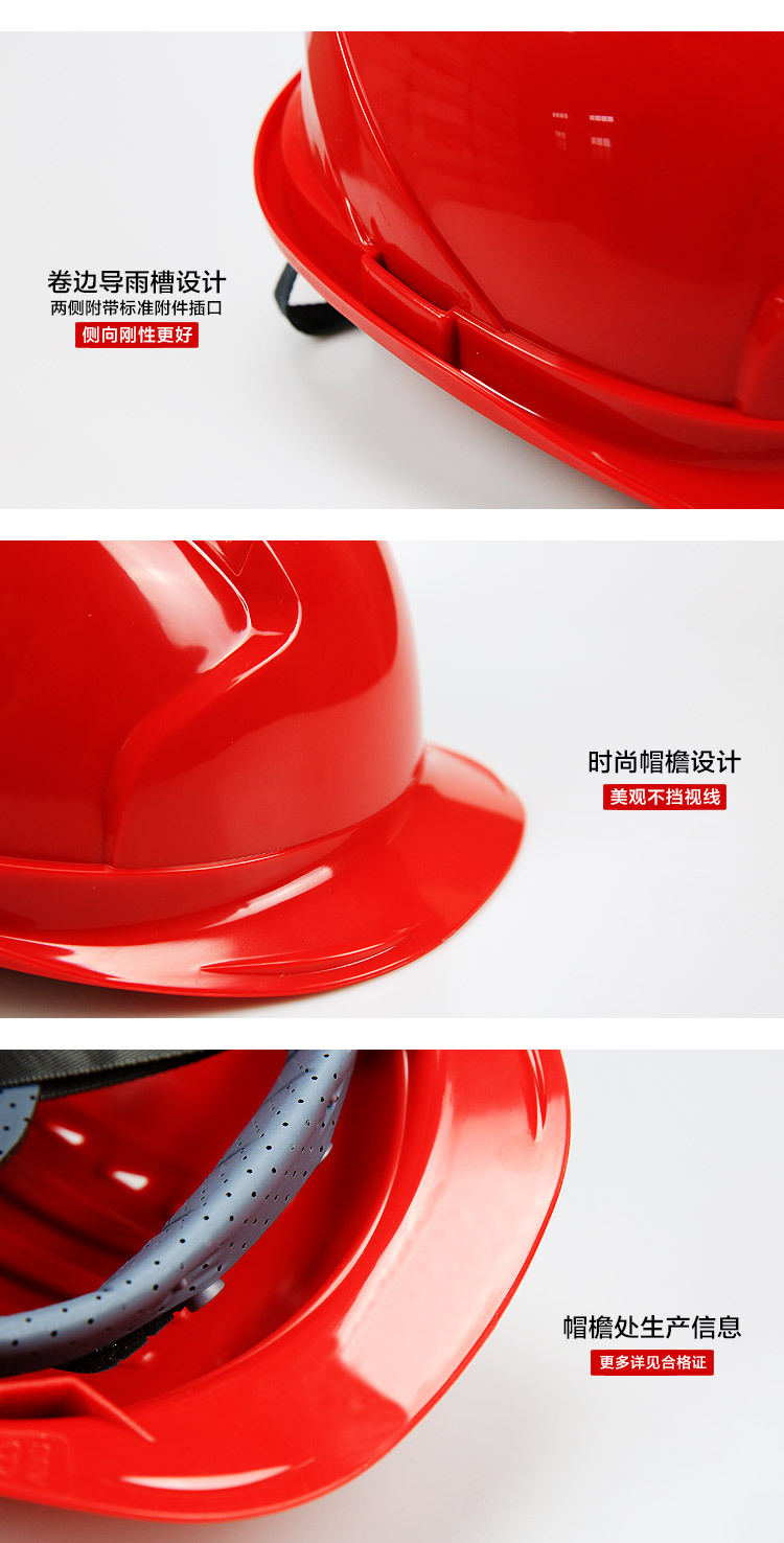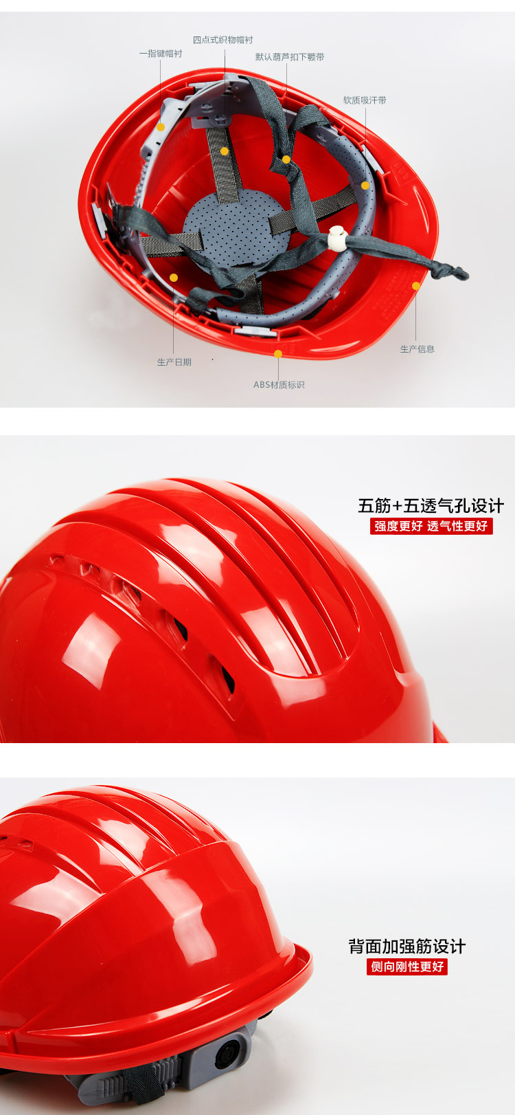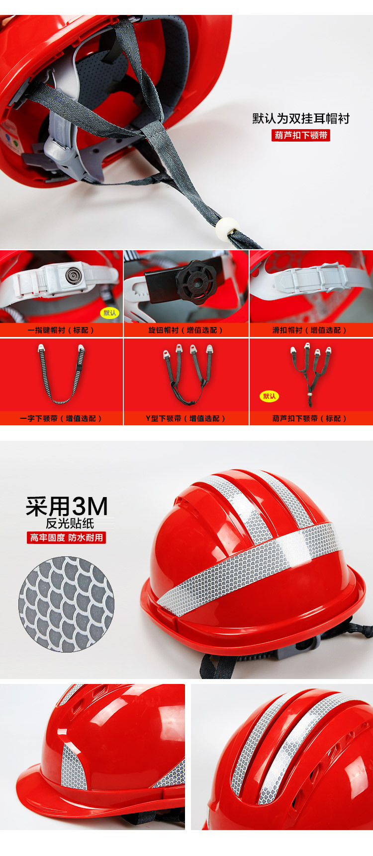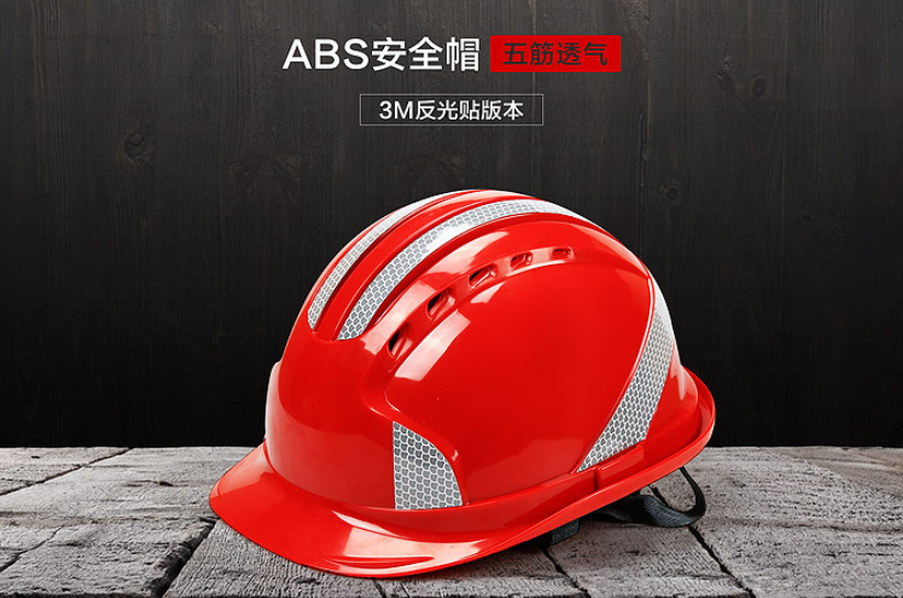 谋福 9962 五筋透气ABS反光安全帽批发 领导佩戴防砸防护头盔 工地建筑头盔(红色反光条 ) 个 红色