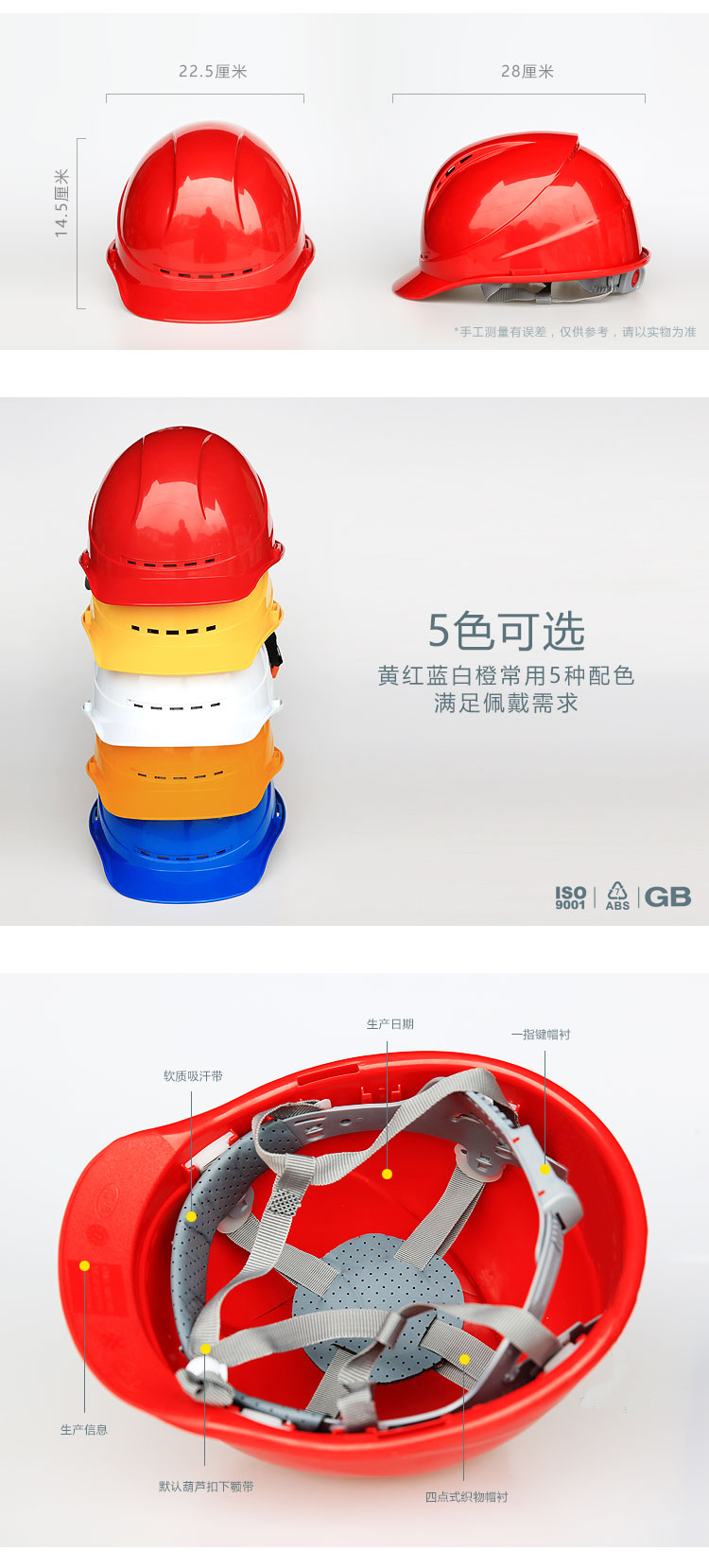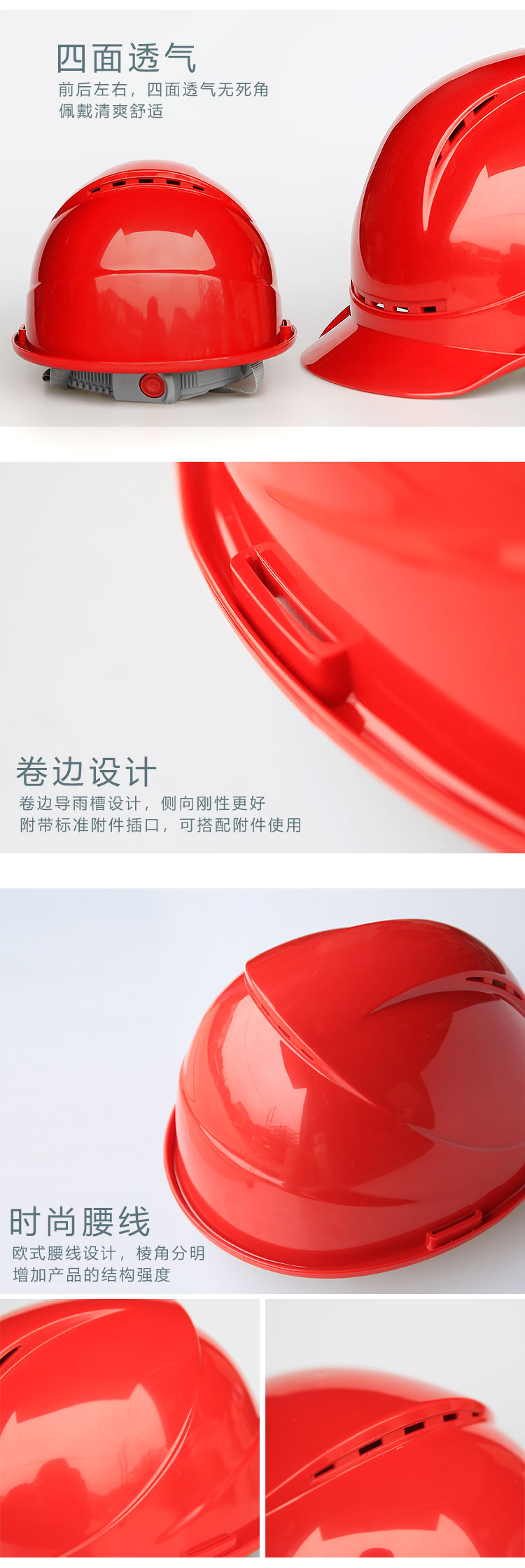 谋福9972安全帽工地施工领导电工国标加厚头盔劳保建筑工程帽(四面透气挡水槽(卷边) 个 红色