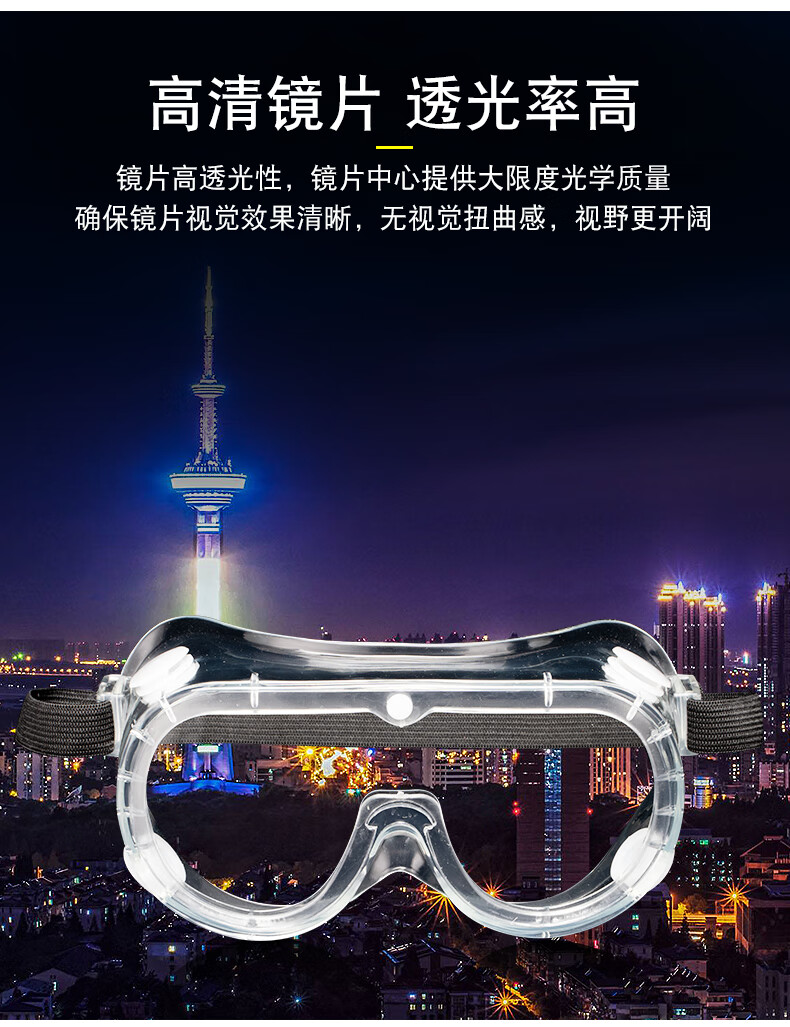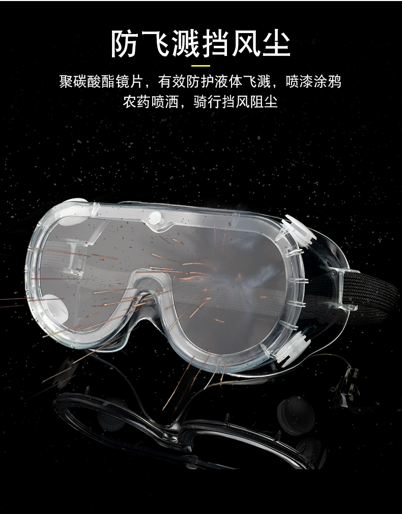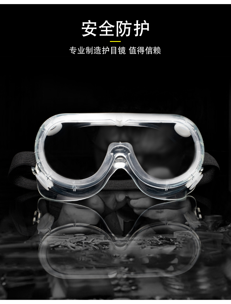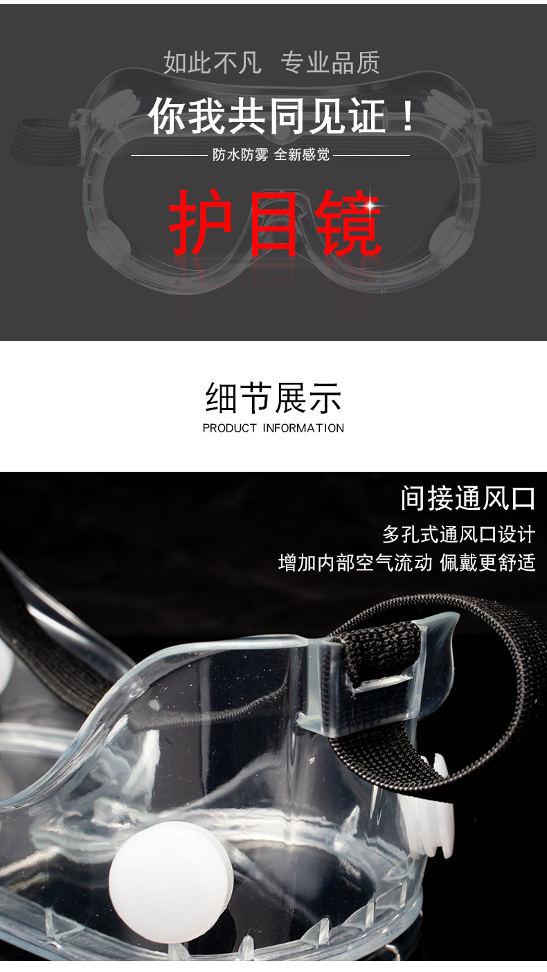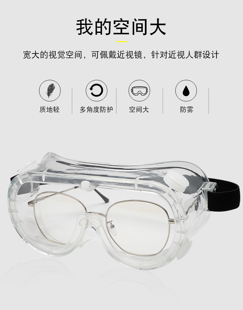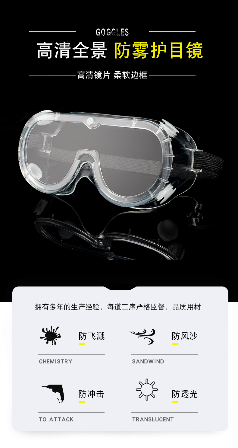 谋福02防雾护目镜 全封闭式防飞溅防飞沫防尘防护眼罩可戴镜【防雾全封闭 (黑带款)】 个 透明色
