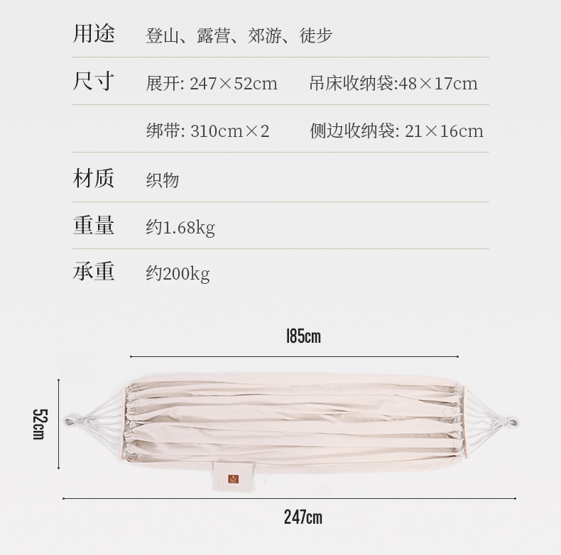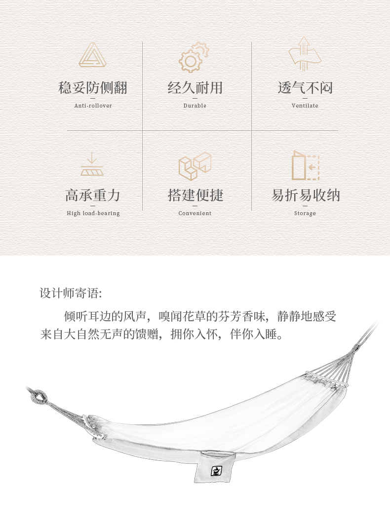 骆驼(CAMEL)防侧翻吊床户外双人秋千宿舍寝室学生吊椅室内家用庭院吊网床 1142253006 张 米白