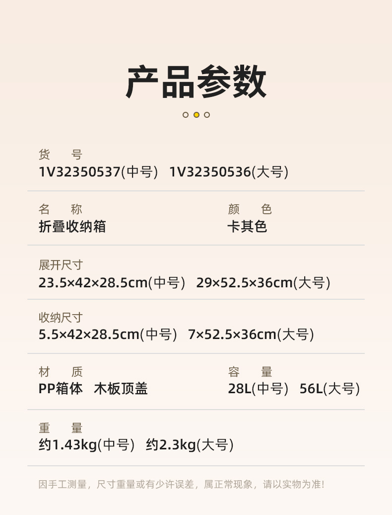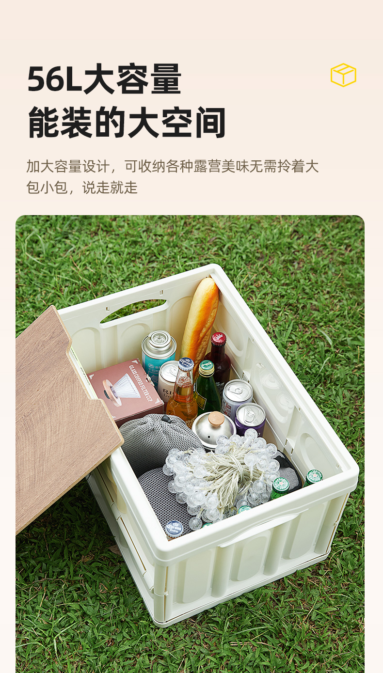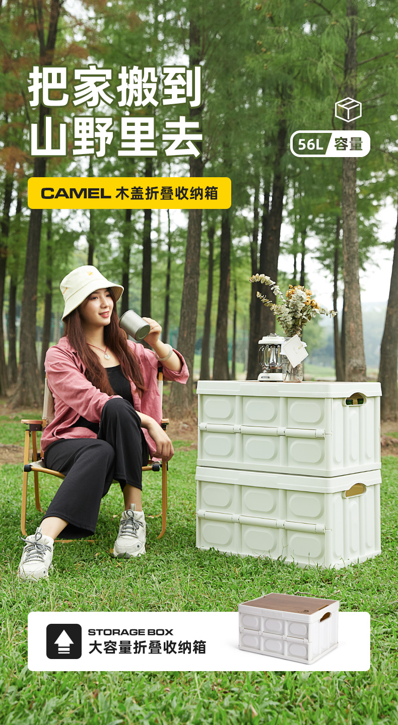 骆驼户外露营收纳箱折叠整理储物箱子野营桌装备用品便携杂物包袋 1V32350536个 56L 卡其色