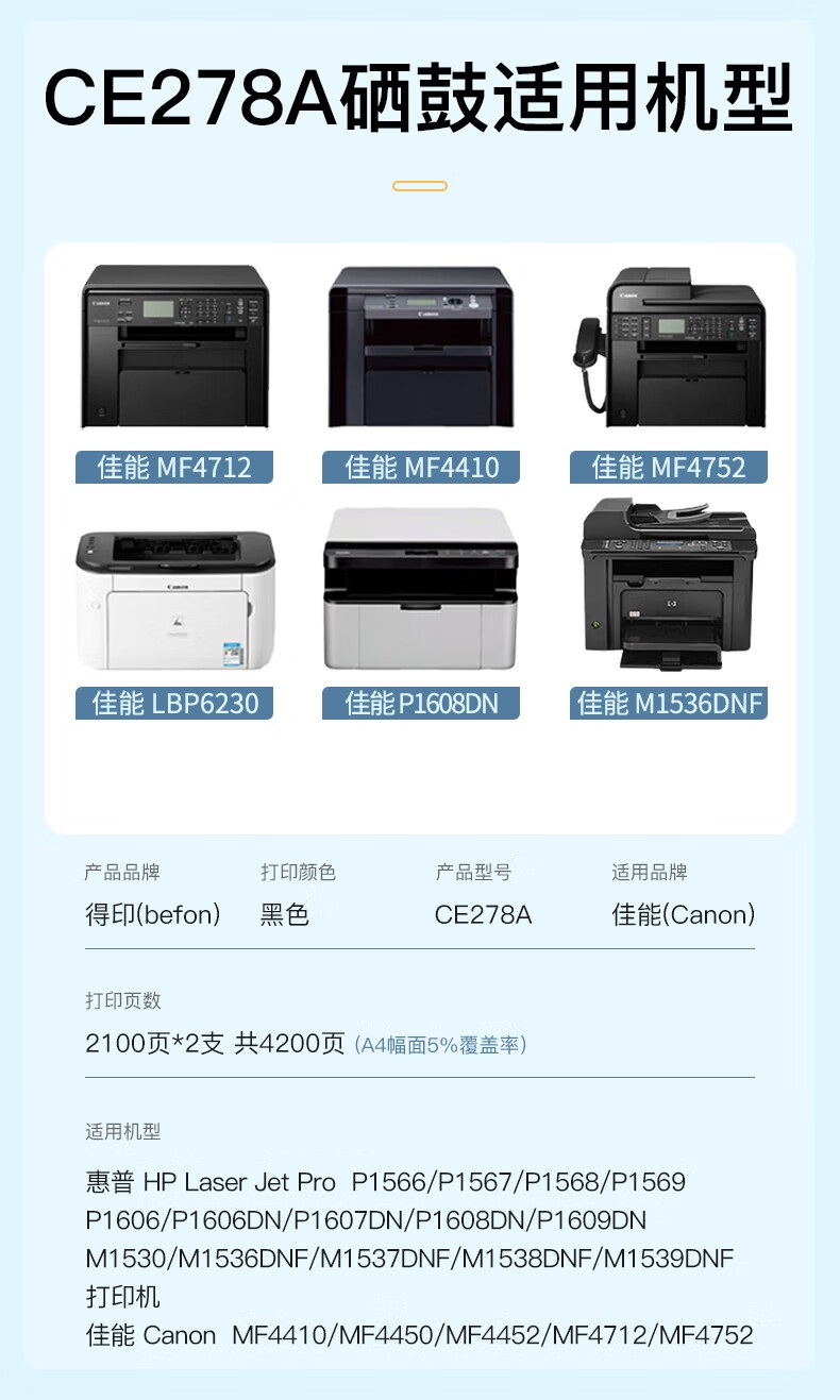 得印CE278A 78A硒鼓2支装 适用惠普M1536dnf粉盒P1606dn P1566单位:套 黑色