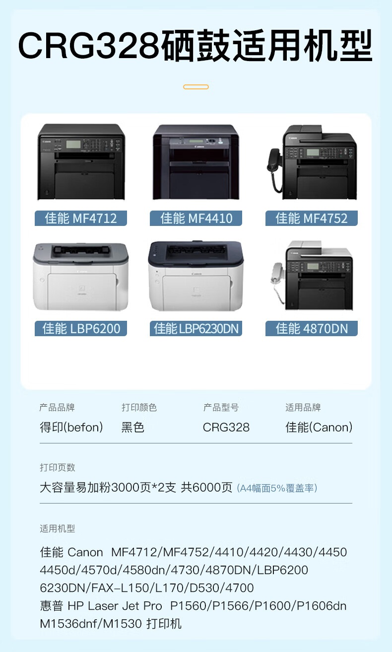 得印 CRG328大容硒鼓2支装 佳能MF4712 M1536dnf P1606dn 单位:套 黑色