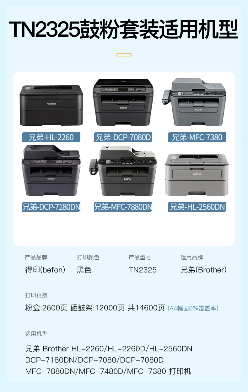 得印TN2325/DR2350硒鼓套装 适用兄弟7180DNHL2260/D 2560DN单位:套 TN2325/DR2350硒鼓套装