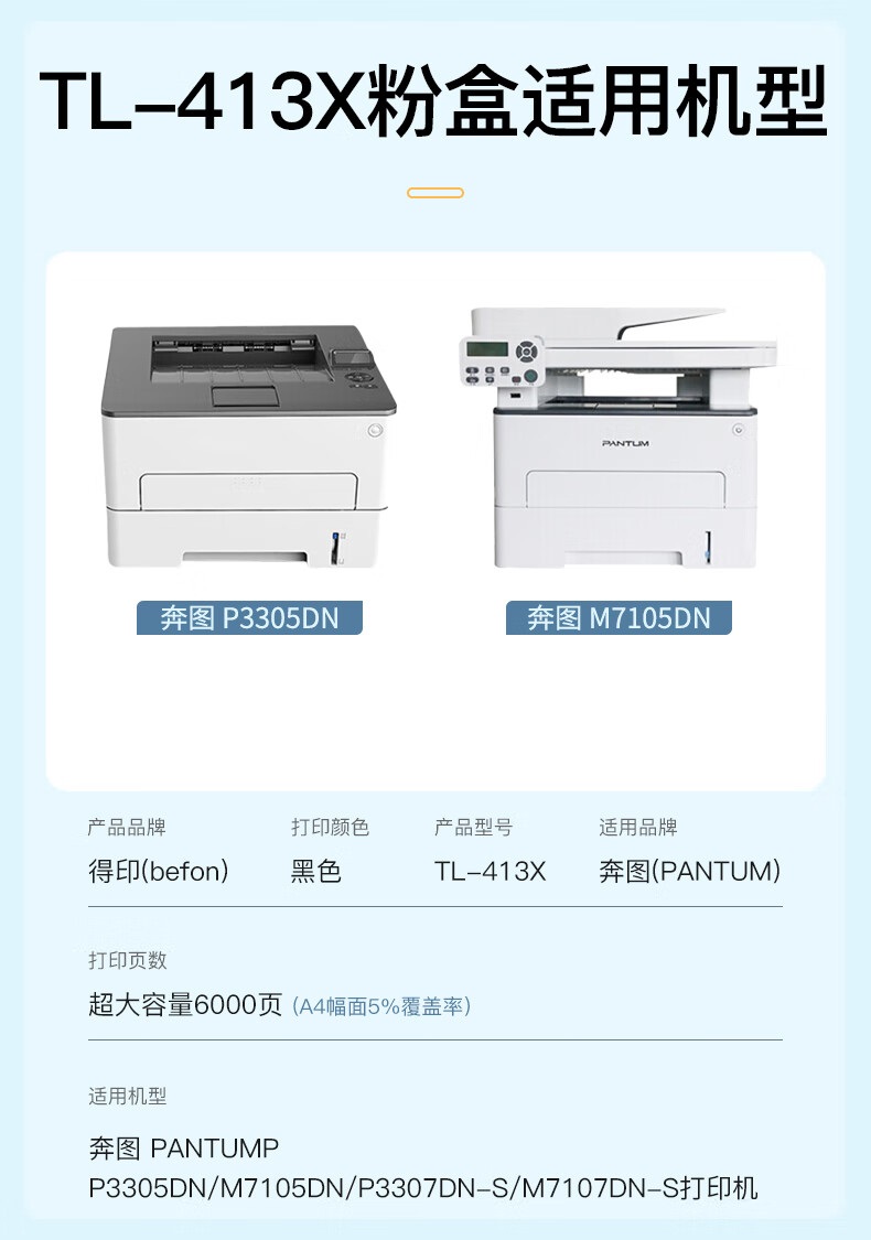 得印TL-413X粉盒 适用奔图PANTUM P3305dn M7105DN单位:支 TL-413X粉盒