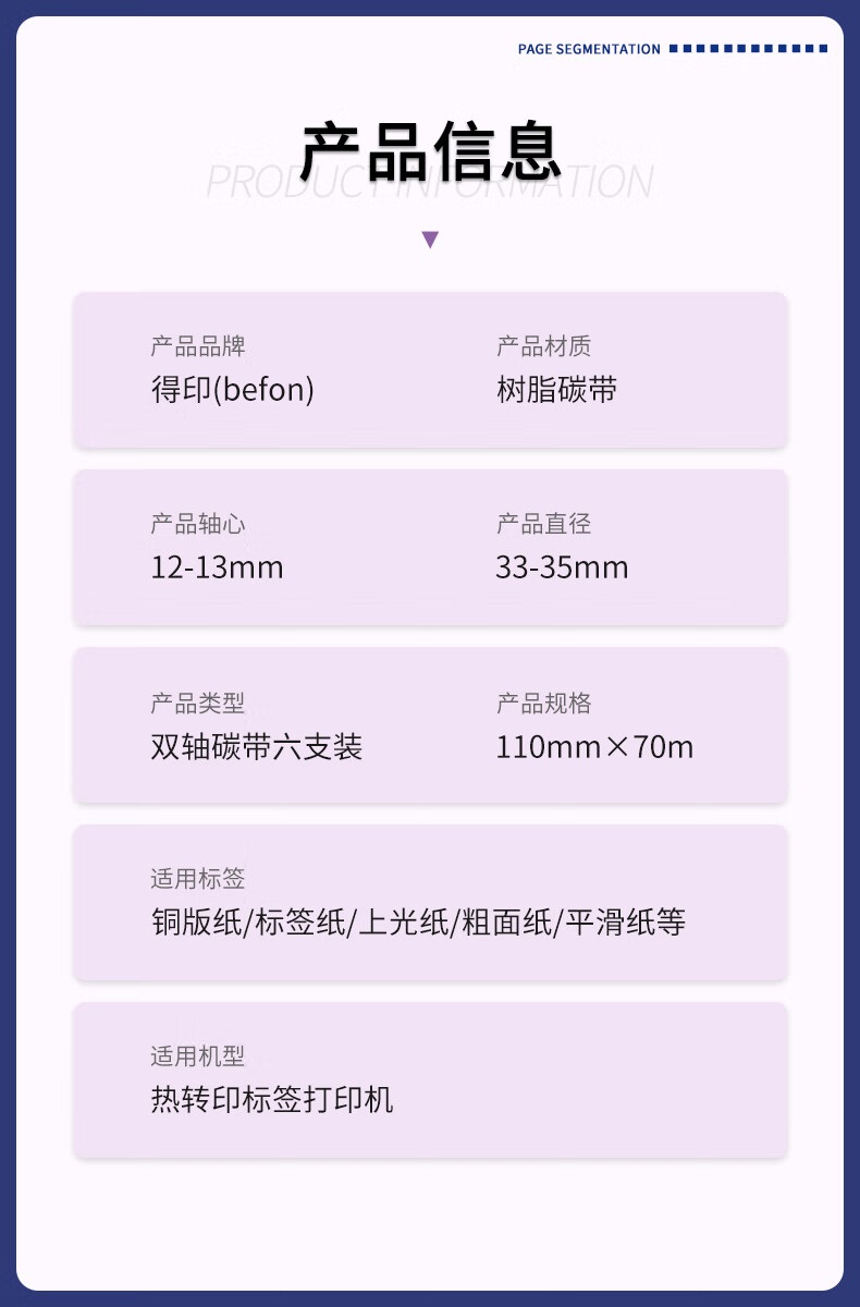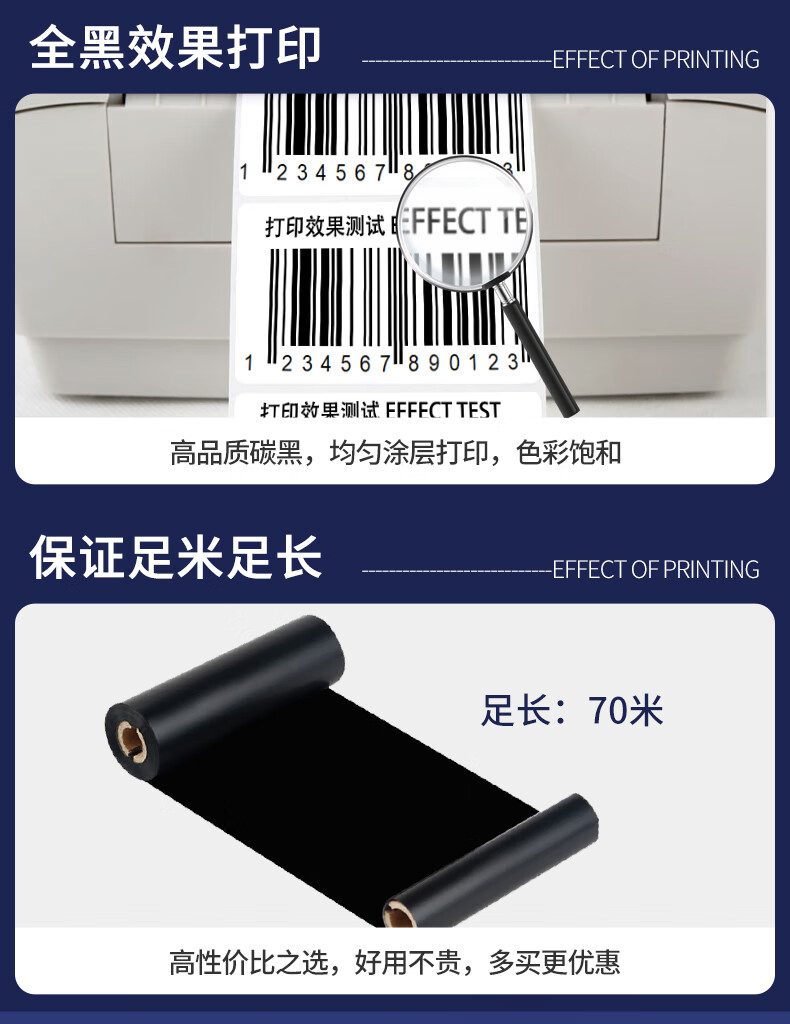 得印110mm*70m双轴碳带六支装 增强树脂碳带 条码打印机专用色带 标签带 热转印标签打印机通用碳带 110mm*70m双轴碳带*6支