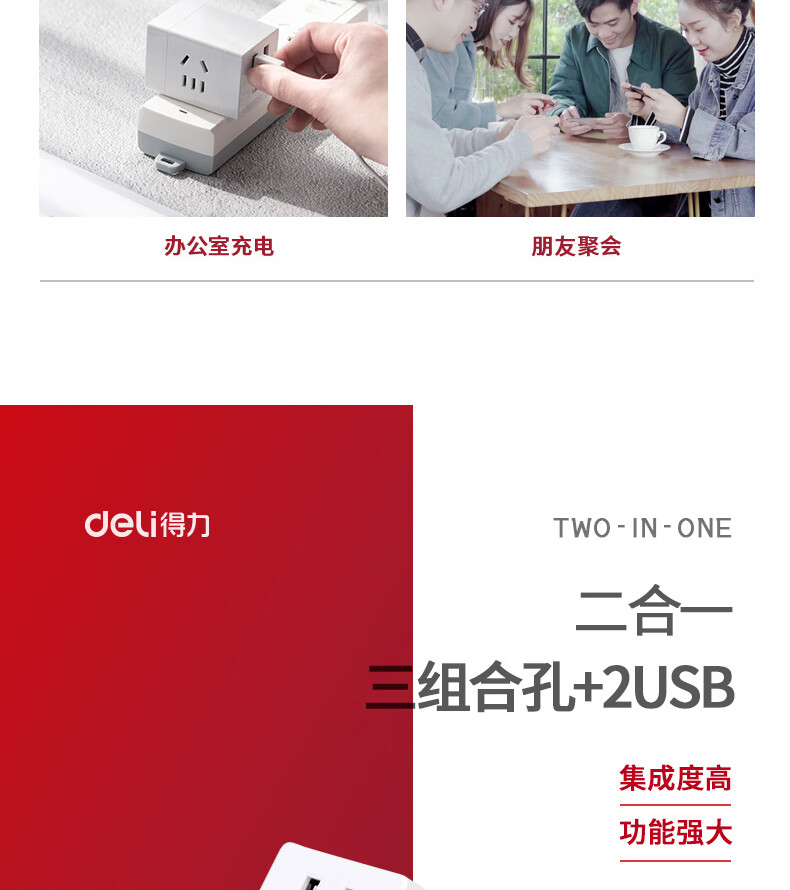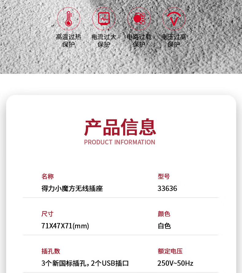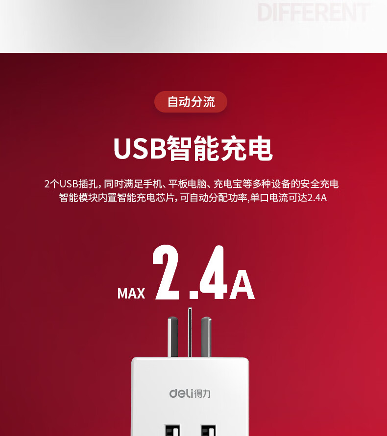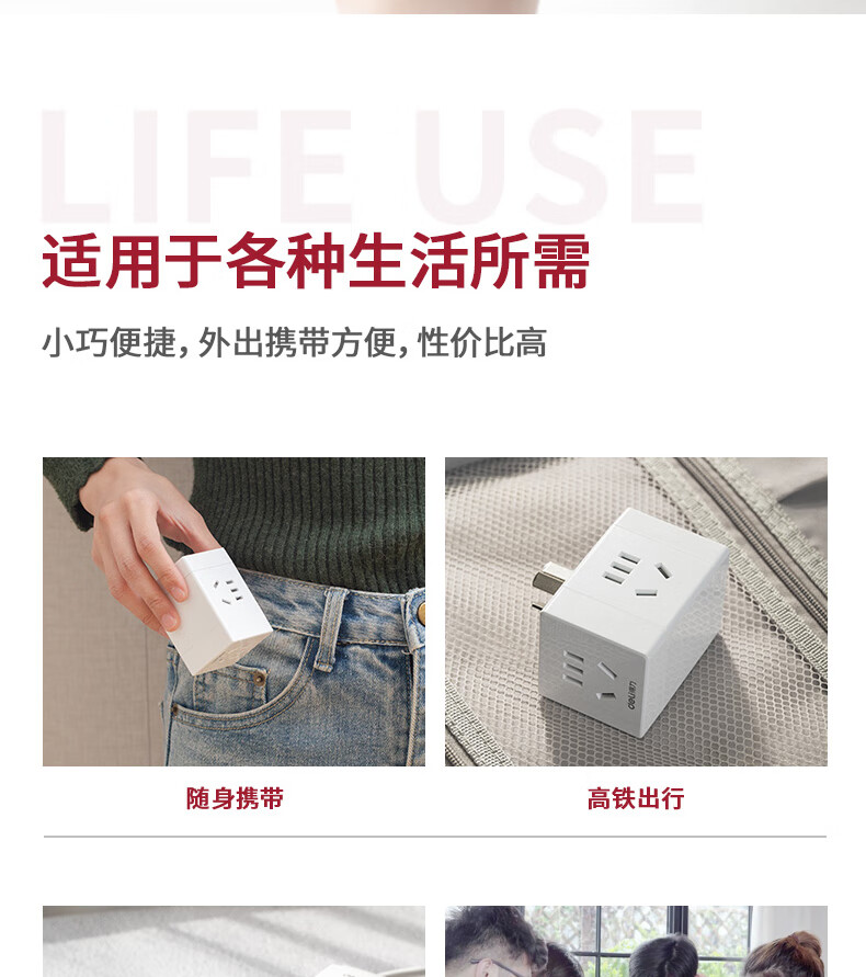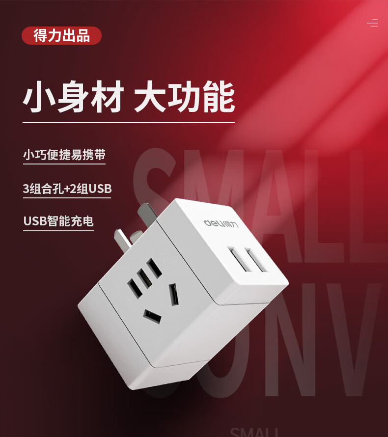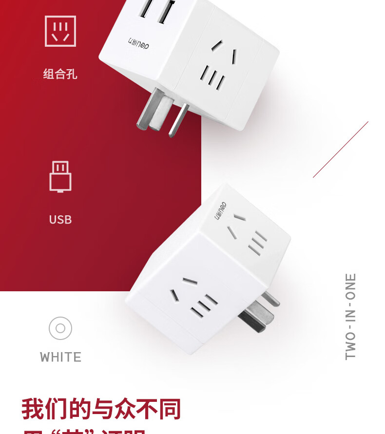 得力(deli)魔方智能USB插座 旅行转换插头 插排/ 插线板/ 接线板/ 排插 3孔+2USB 无线白色魔方 33636 个 白色
