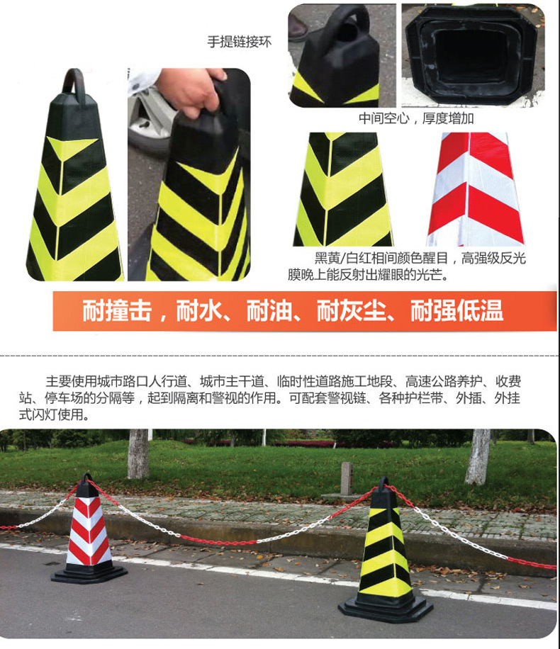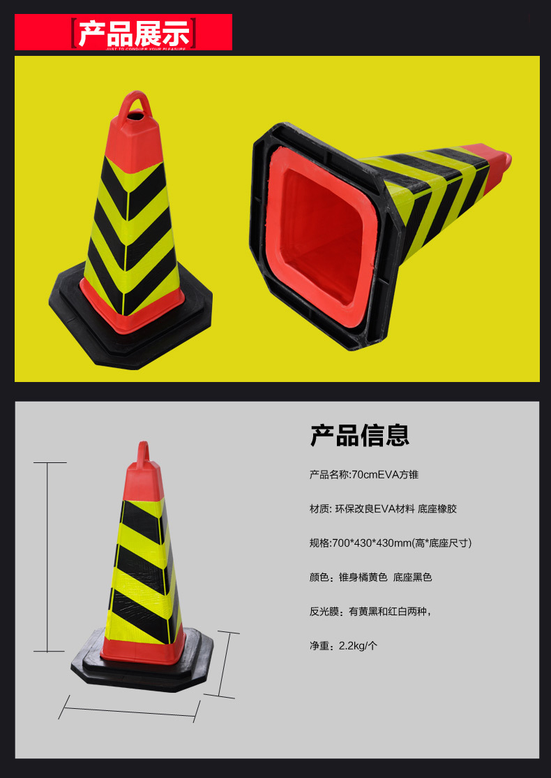 中云智创 EVA反光橡胶路锥 交通警示雪糕筒高70cm带提环8个/包 红黄黑