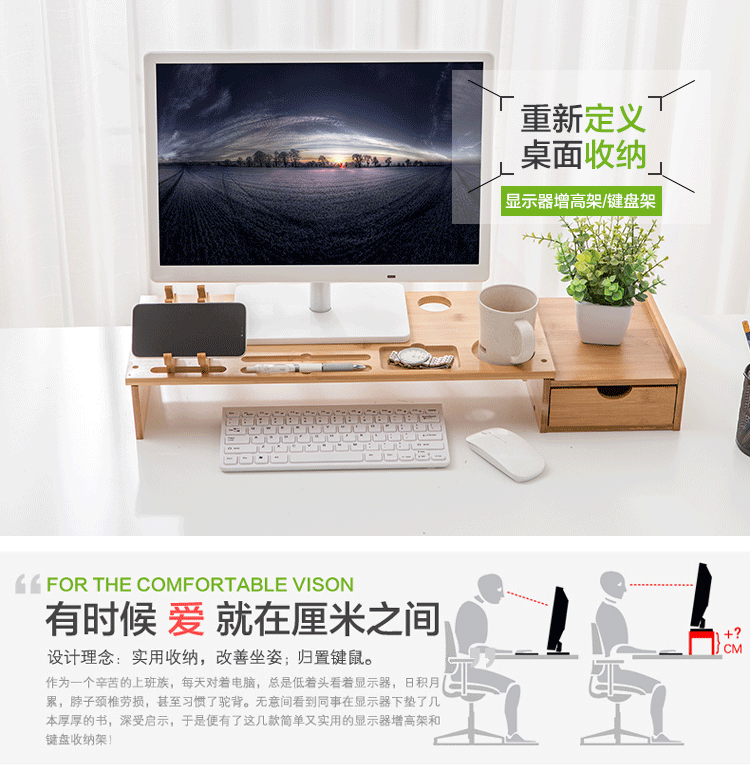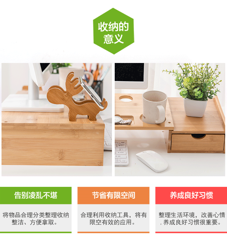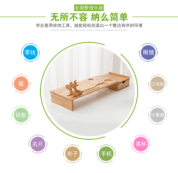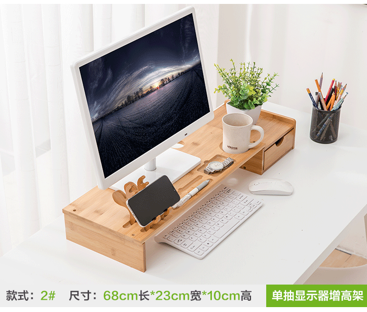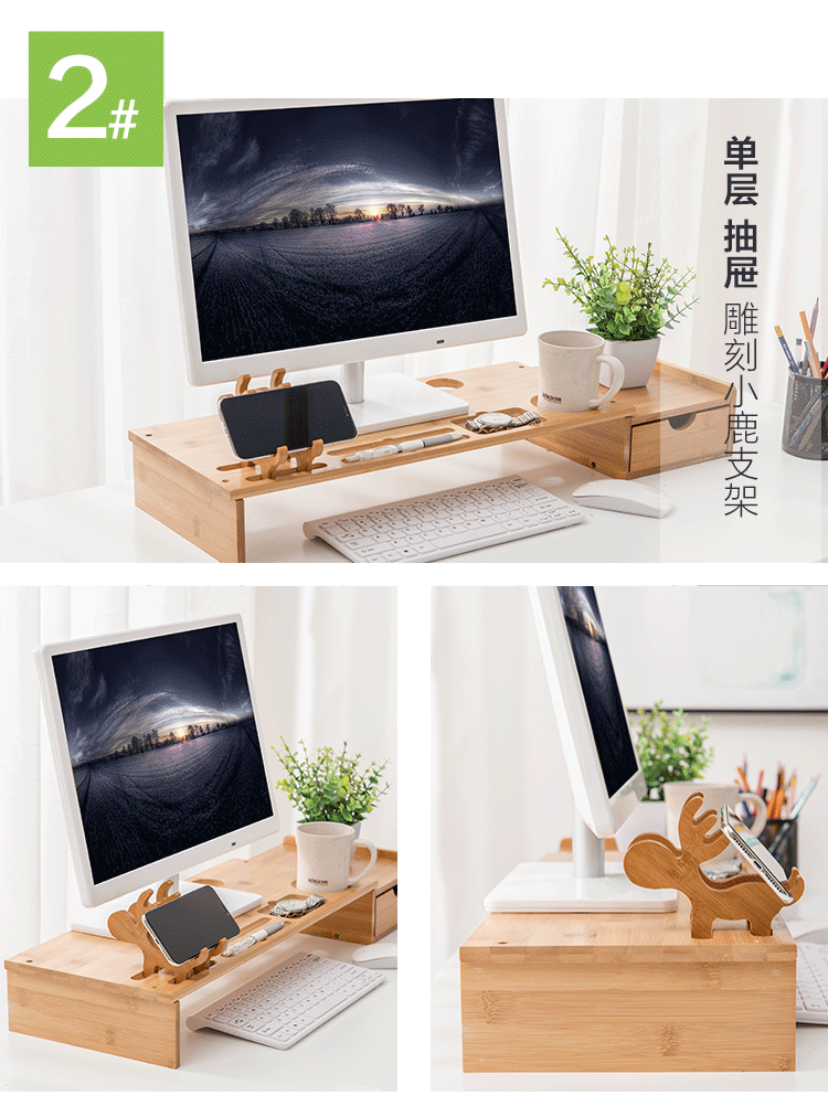 倍方 73683 小鹿单抽屉款 电脑支架 置物架 电脑底座 键盘收纳架 显示器支架 竹木色