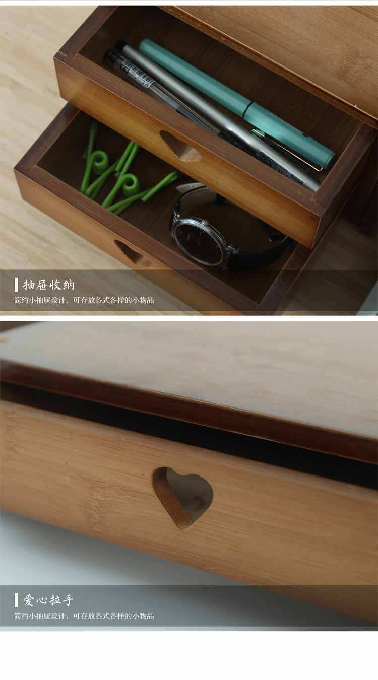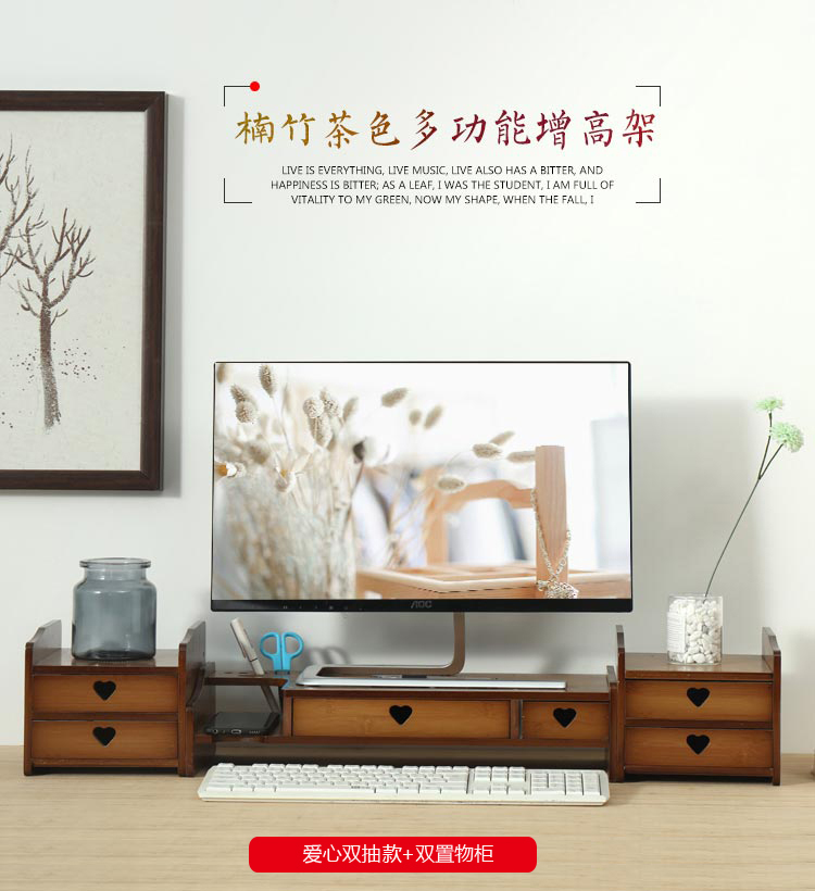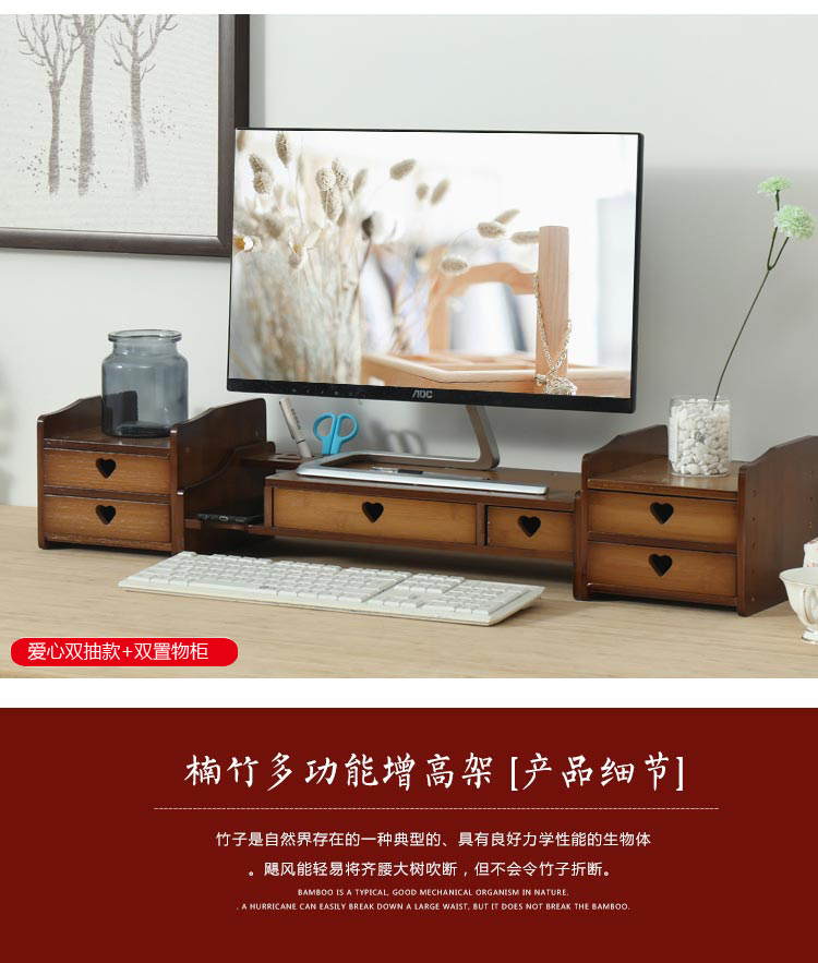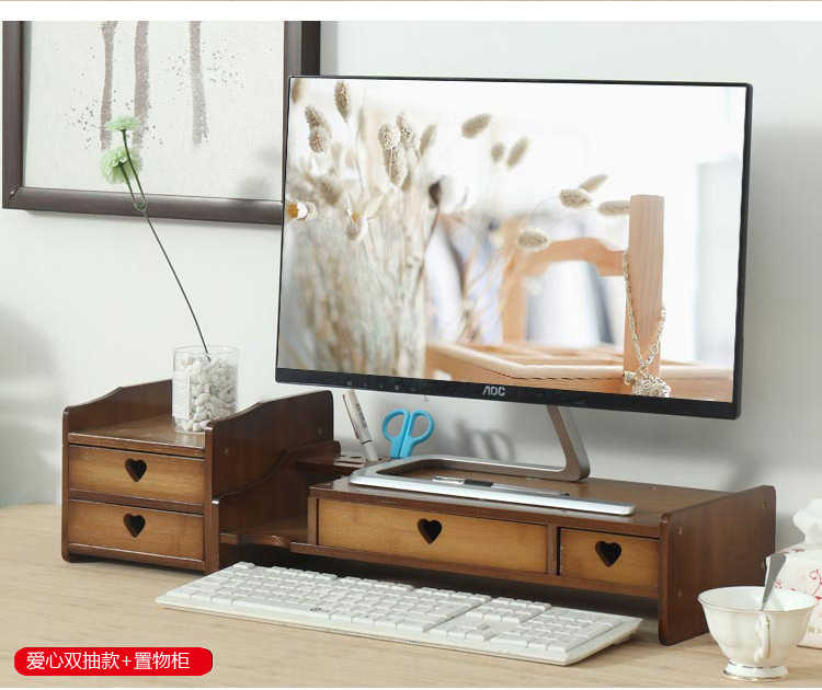 倍方 73140茶色爱心款双抽屉电脑显示器增高架 电脑支架 置物架 显示器支架 单位:个 胡桃木色