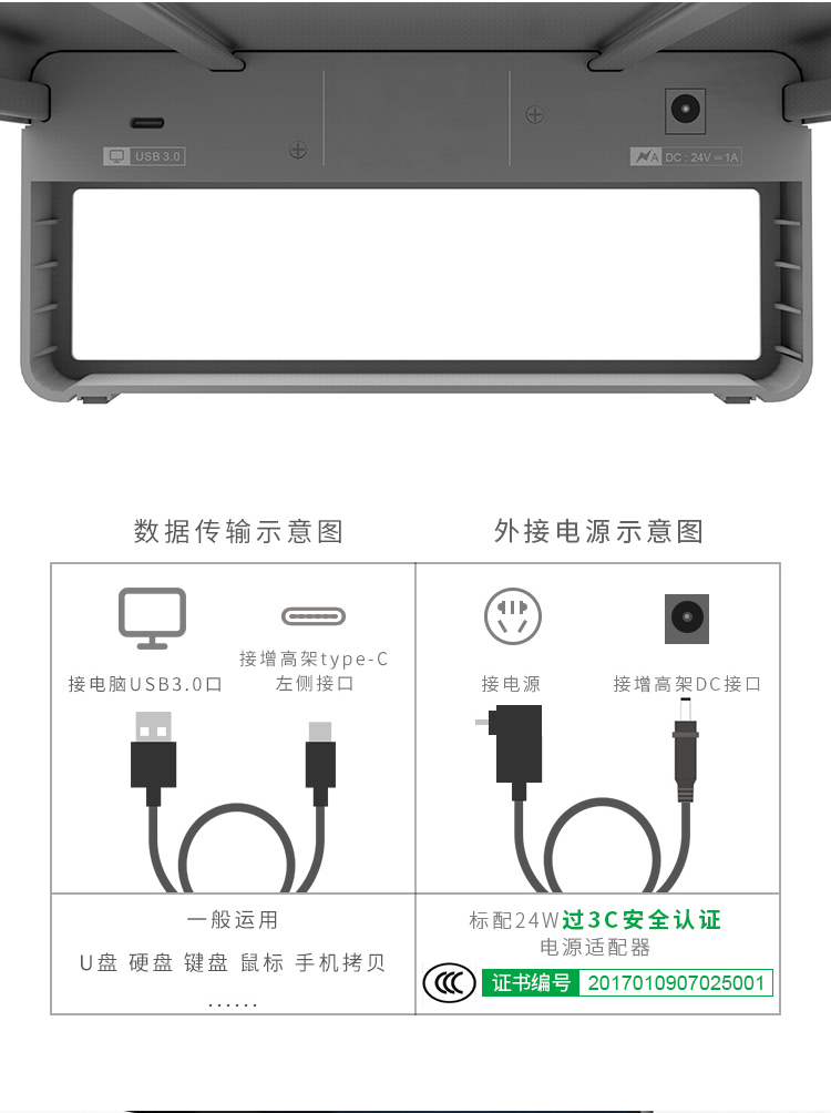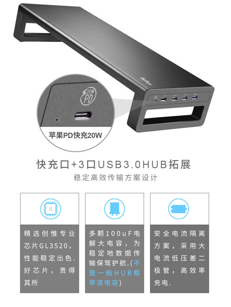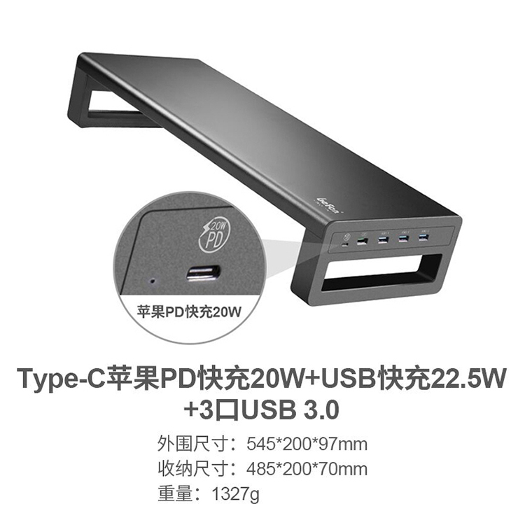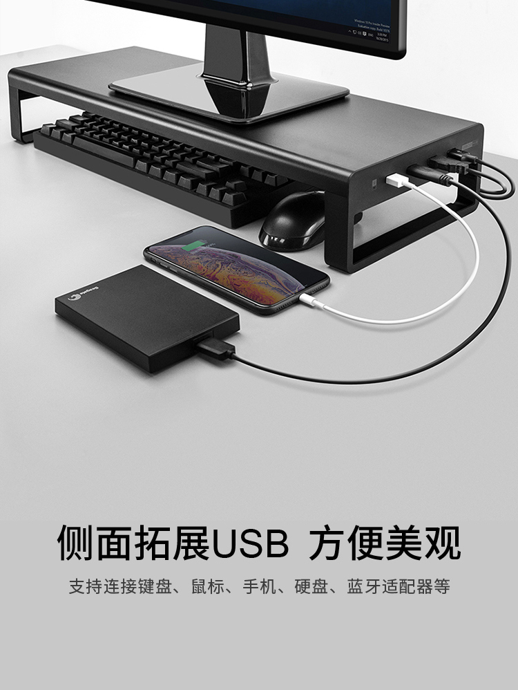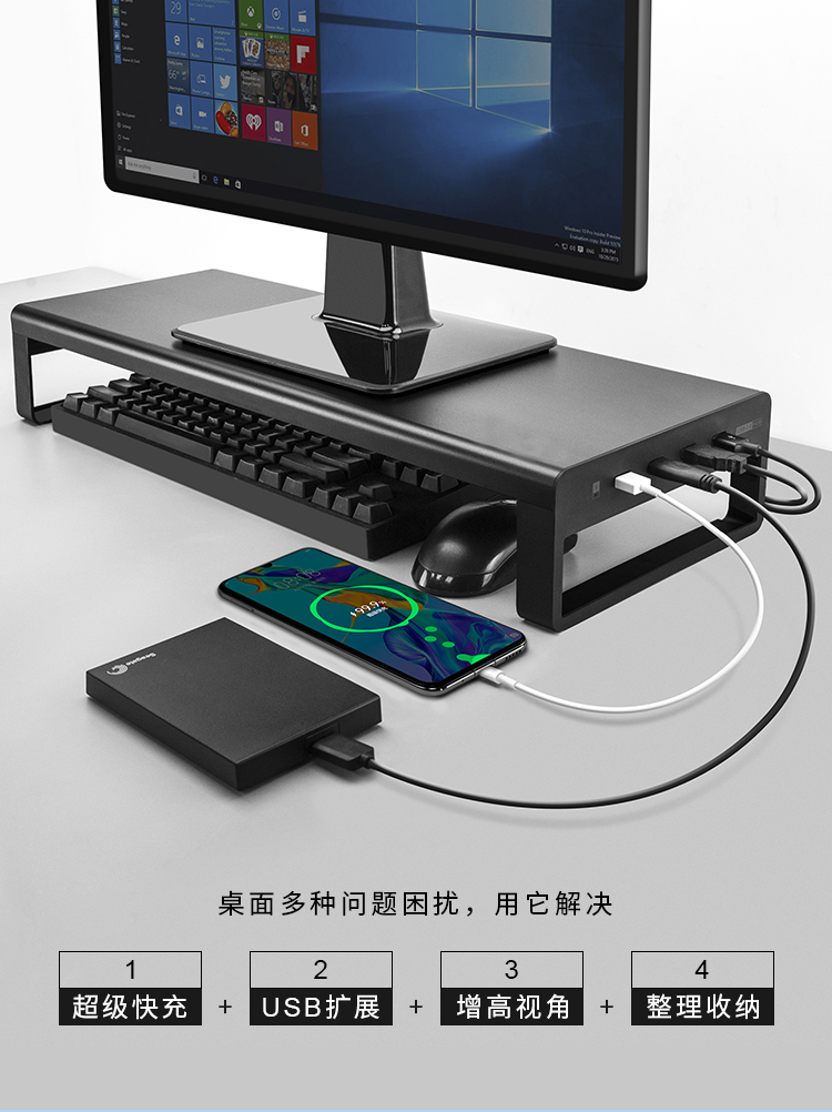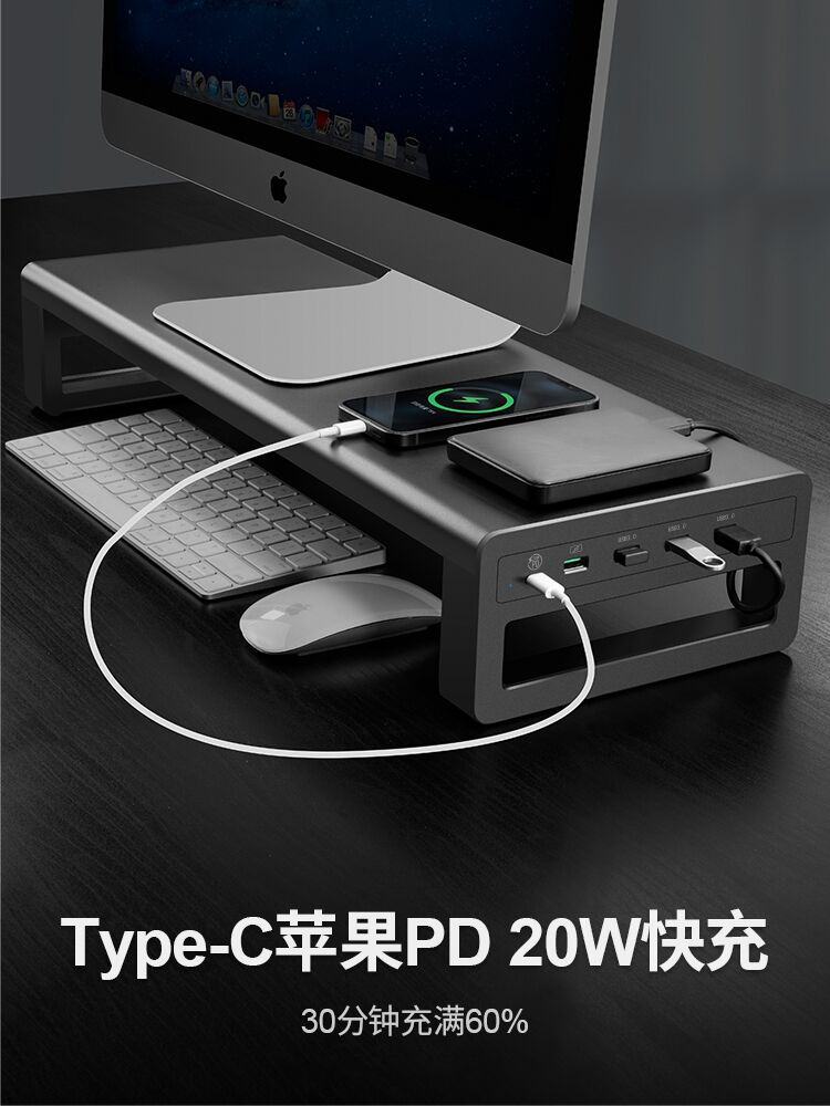 倍方 电脑显示器增高架 超级快充款+4口usb3.0 显示器支架 键盘收纳架 桌面置物架底座托架 超级快充款+4口usb3.0