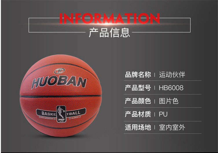 运动伙伴 篮球防滑耐磨7号球比赛训练pu 篮球 7#PU HB6008 个 褐色