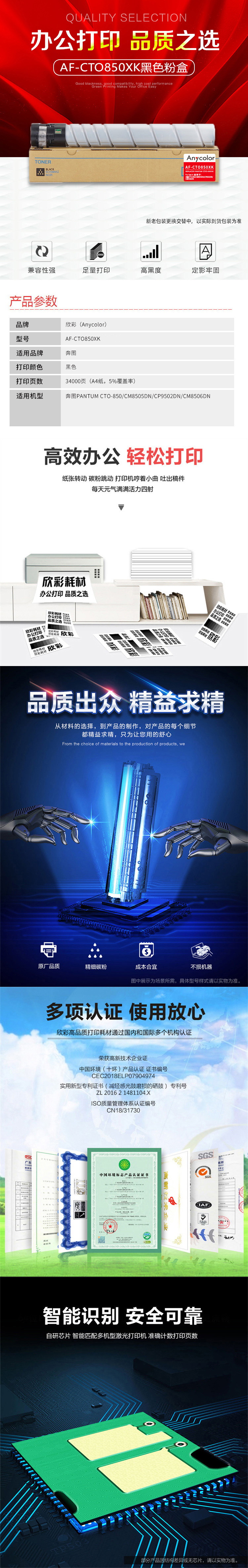 欣彩CTO-850XK墨粉盒 AF-CTO850XK黑色大容量适用奔图CM8505DN CP9502DN CM8506 9505DN 黑色