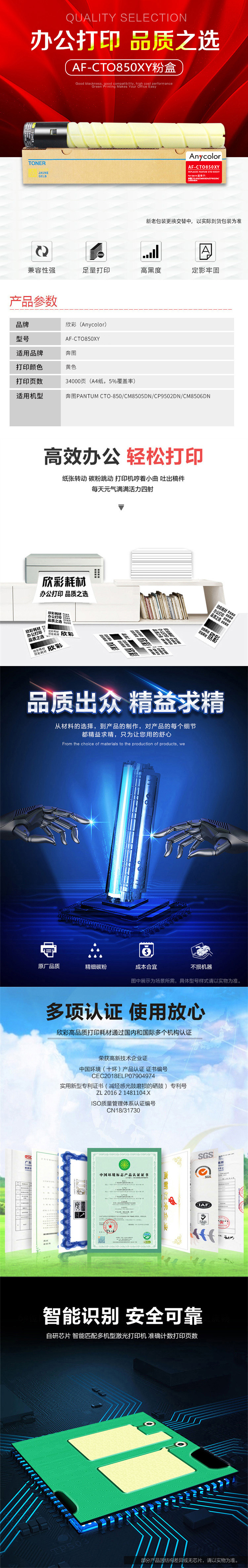 欣彩CTO-850XY粉盒 AF-CTO850XY黄色大容量适用奔图CM8505DN CP9502DN CM8506 9505DN 黄色