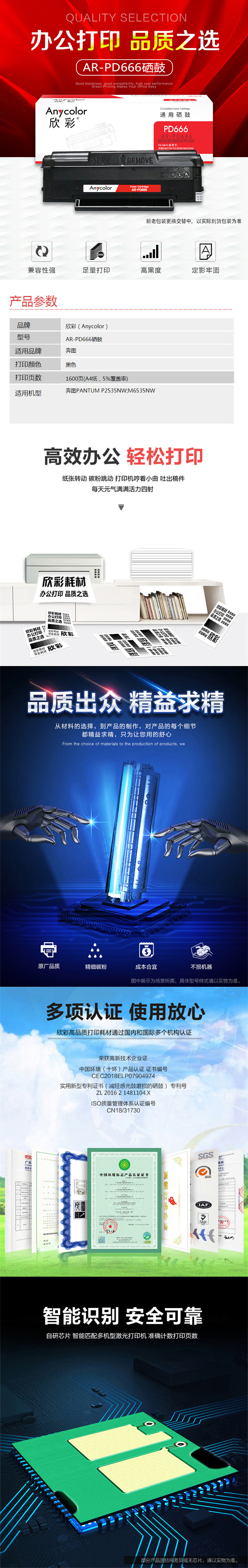 欣彩PD-666硒鼓专业版AR-PD666适用奔图PANTUM P2535NW M6535NW 黑色