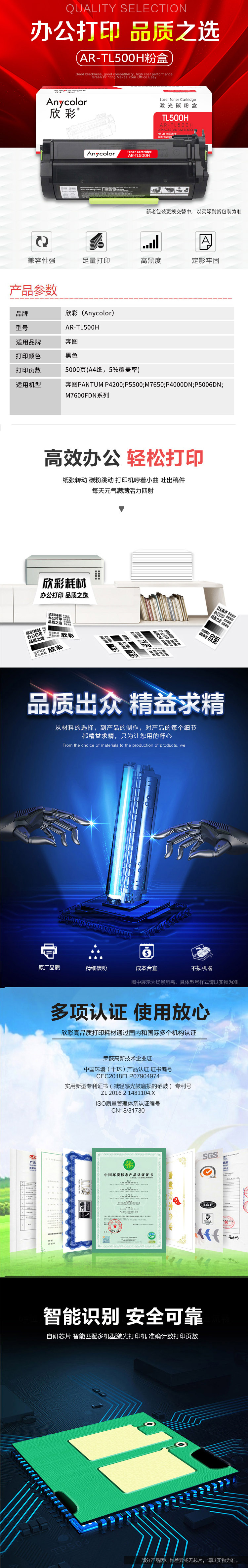 欣彩TL-500H粉盒AR-TL500H高容5K适用奔图P4000DN P5006DN M7600FDN打印机 黑色