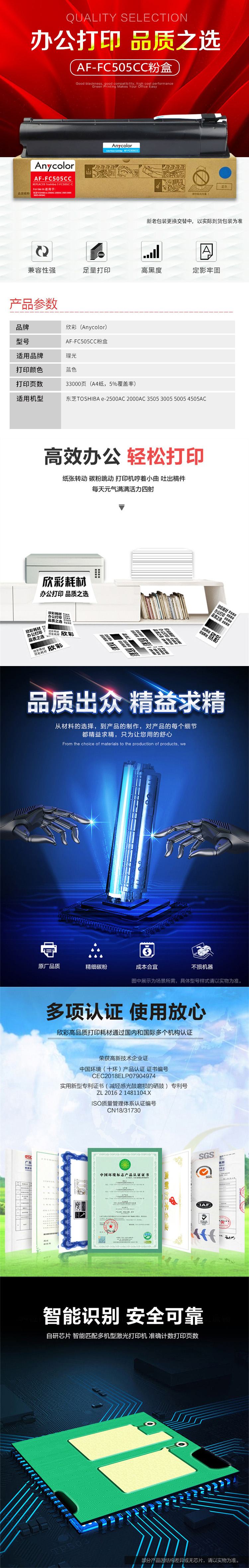 欣彩T-FC505C墨粉盒AF-FC505CC 蓝色大容量 适用东芝TOSHIBA e-2500AC 2000AC 3505 3005 5005 4505AC打印机 蓝色