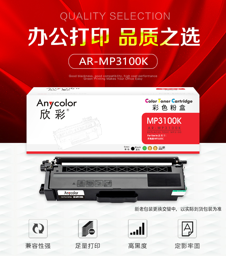 欣彩AR-MP3100K黑色粉盒T-C31K6K5T 适用光电通OEP3110CDN 3112CDN 3115CDN MP3100CDN 3104CDN 3105CDN 黑色