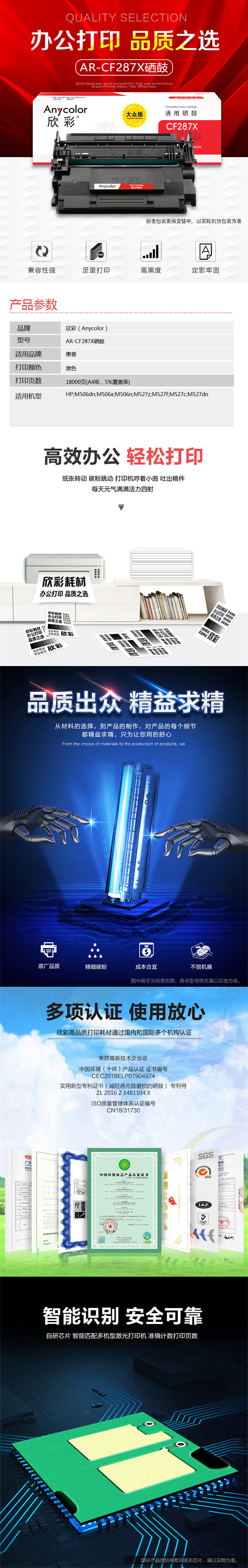 欣彩CF287X硒鼓AR-CF287X大众版hp87A大容量CF287A适用惠普HP M501N M506N M506DN M506X M527DN 黑色
