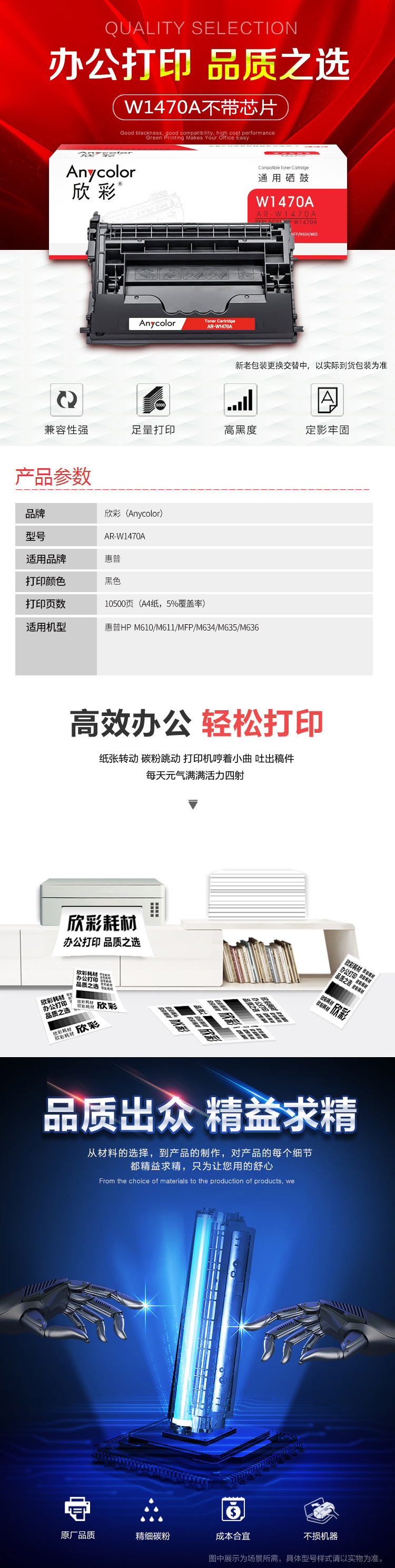 欣彩 W1470A硒鼓不带芯片AR-W1470A黑色147A适用惠普M610 M611 M612 M634CVBN 黑色
