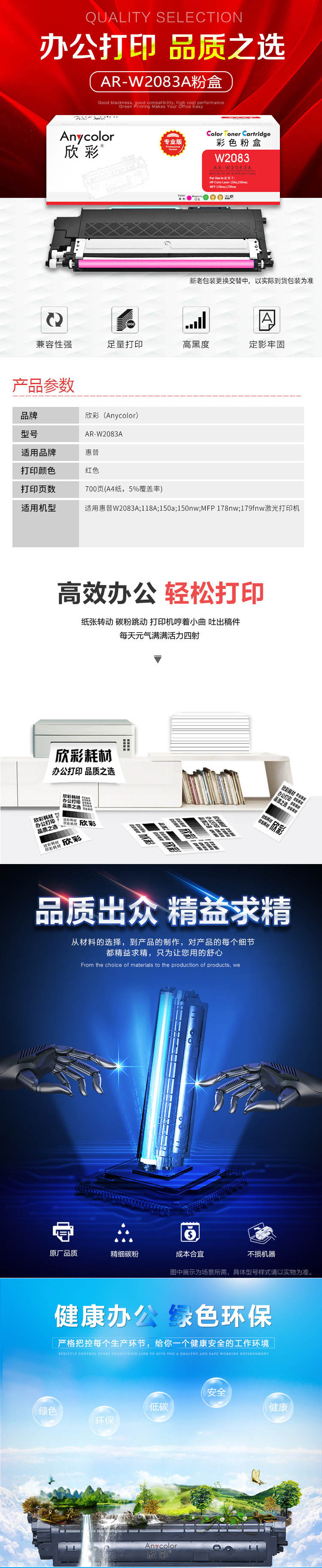 欣彩(Anycolor) AR-W2083A 700页 适用惠普HP Color 粉盒 1.00 只/支 (计价单位:支) 红色
